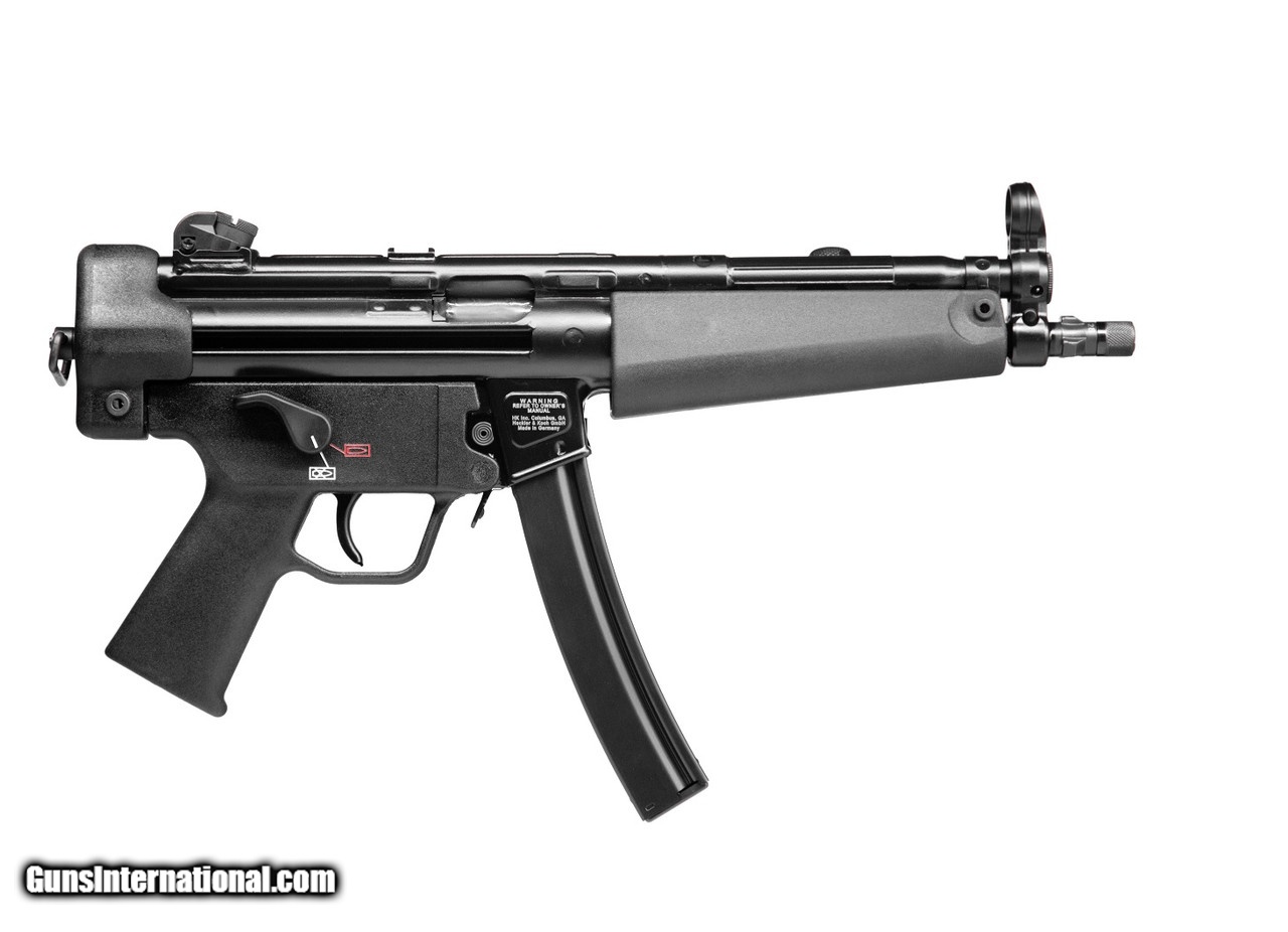 Description: Manufacturer: Heckler & Koch Model: SP5 SKU: 81000477 Caliber: 9mm Luger Operating System: Roller-Delayed Blowback Capacity: (2) 30 Round Magazines Barrel Length: 8.86" Navy Barrel with Threaded Tri-Lug Adaptor Frame: Black Polymer Grip: Black Polymer Weight: 5.1 lbs Overall Length: 17.8" Safety: Cross Bolt Safety Sights: Iron Sights All items are factory new in box unless otherwise stated. Based on the information available to us, the above specifications describe this item to the best of our knowledge. For further information, please contact or visit the manufacturer's . SOLD |