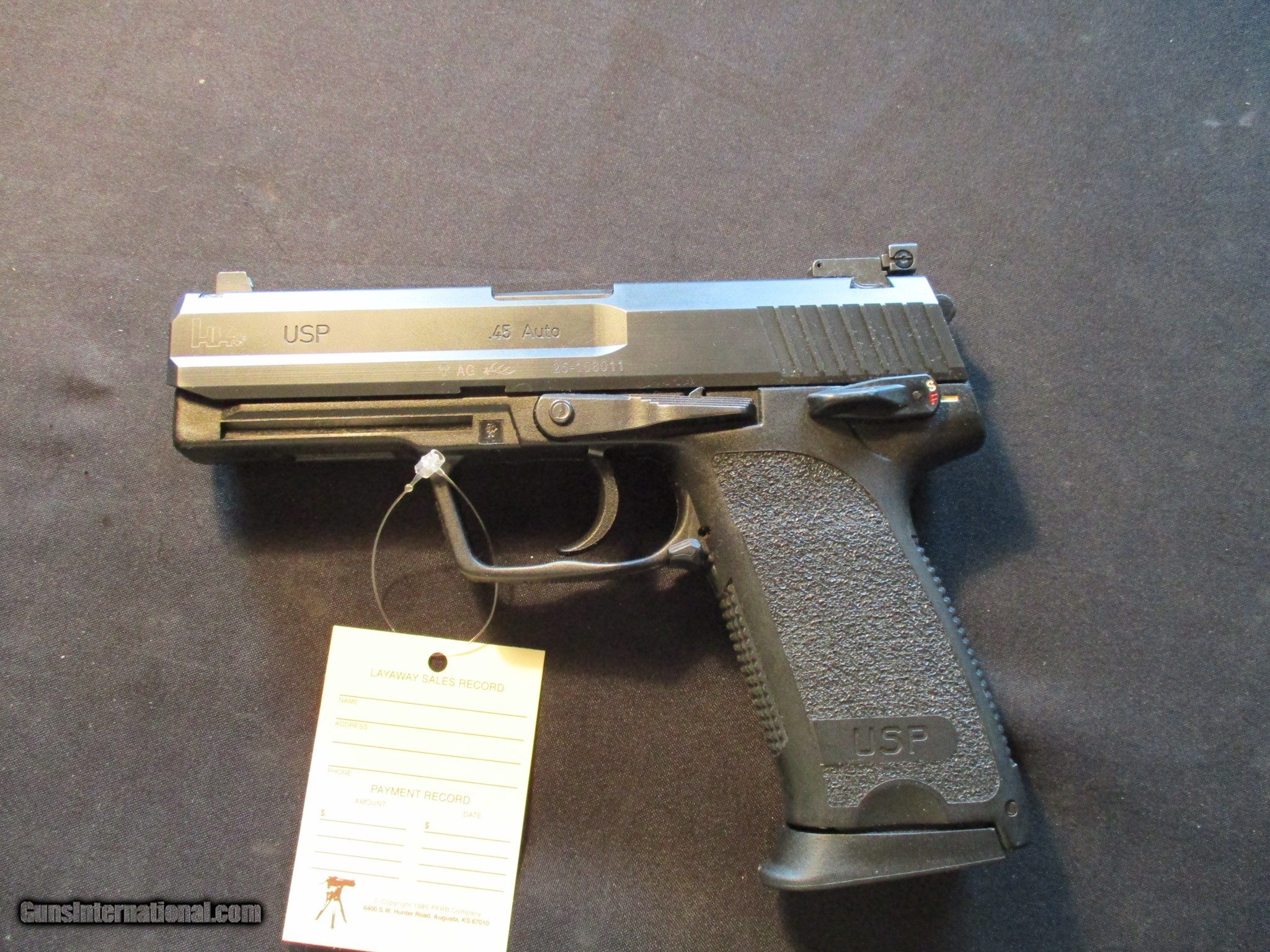 Description: H&K USP 45 ACP, 12 round mags, comes with 3. Factory finish on the gun, nice clean gun, comes with the factory night sights, Tru Dot. This is the model with the safety and decocker.Email me if you would like these pics sent to you, they will come through bigger and better than on the listing page here. We do offer Lay-A-Way. Our standard terms are 25% down, 90 days. Initial deposit is not refundable. Email me with any questions. I am a store front dealer, and I will close s if the gun sells locally. Once it has aI will pull it from my shelves. Please check your local laws to confirm it is legal to own in your state! Buyer pays $25 shipping and insurance to your FFL in the lower 48. AK, HI or PR is extra. I will ship to California, NO PROBLEM! All my guns come with a non firing, 3 day unconditional return privilege, from the day UPS delivers to your dealer. Buyer pays shipping both ways if the gun comes back. I can add a new hard case by PLANO for secure shipping for $25 if the buyer wishes (highly recommended, cheap insurance, really helps keep the UPS monster from eating my guns!). No sales tax on guns ship out of Kansas, guns sold in Kansas are subject to Kansas sales tax. I am a licensed FFL, and will include a copy of my FFL with the gun for your dealers records. I will ship to a C&R if the gun is eligible. I will ship to California, but you need to confirm the gun is legal where you are, California or other. I am always looking for good clean, old original Winchesters to buy, consign, or trade, especially pre '64's model 70's and model 54's. WE ALSO TRADE FOR CLASSIC CARS AND TRUCKS! Email me with any questions, and good luck! SOLD |