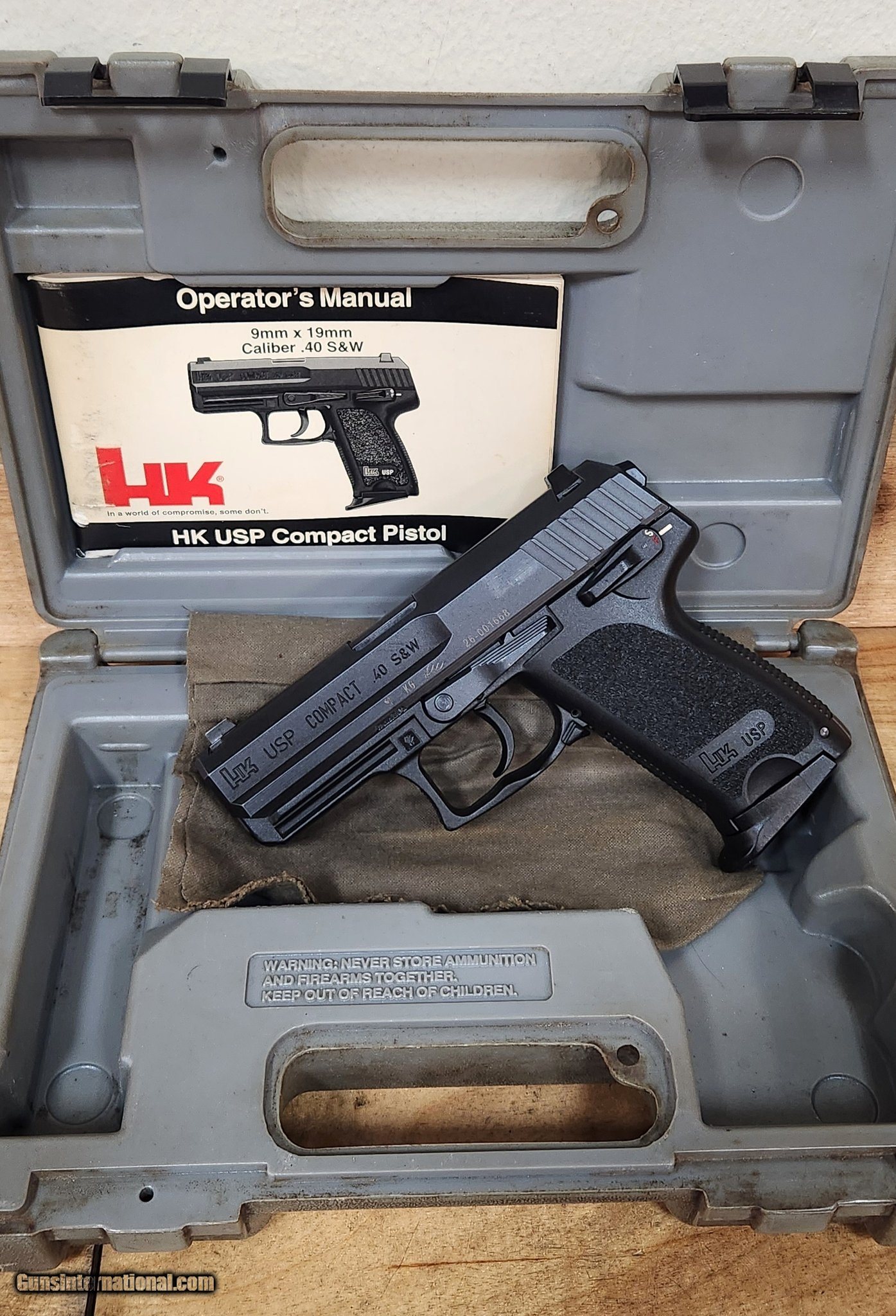 Description: Guns Listing ID: 1351586 Heckler & Koch, USP Compact, Double Action/Single Action, Semi-automatic, Polymer Frame Pistol, Compact, 40S&W, 3.58\" Barrel, Matte Finish, Black, 3 Dot Sights, Manual Safety/Decocker, 10 round (optional 12 rd mags are available but not included). This pistol is in good condition but does have some minor handling wear in the finish including some holster wear. It comes with a plastic HK box and one 10rd magazine. SOLD Manufacturer: HECKLER & KOCH Model: H&k USP Compact .40 S&W (Made in Germany) Caliber Info: .40 S&W Condition: Used - Non-Certified Barrels: 3.58 BARREL Finish: BLACK |