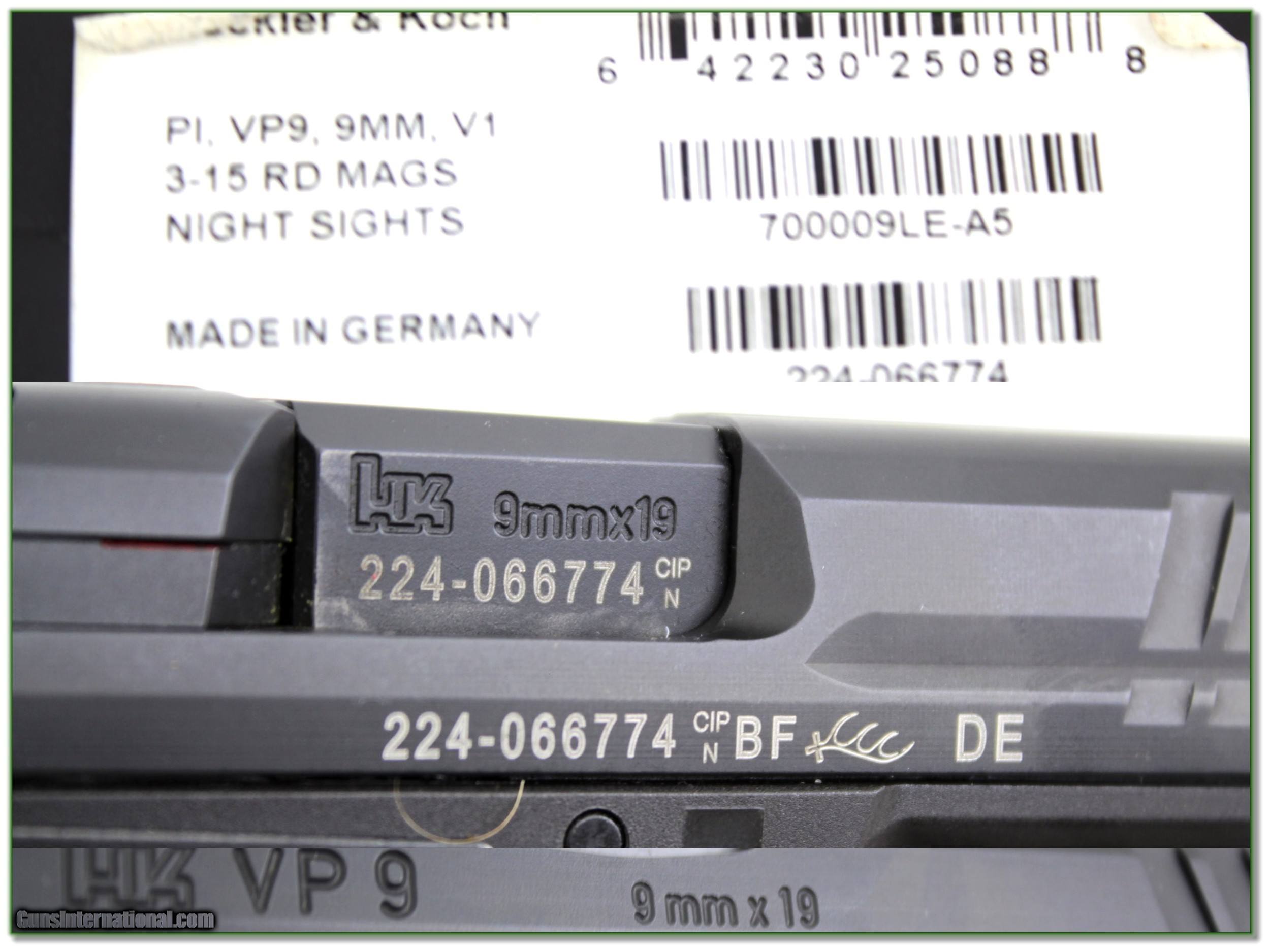Heckler & Koch H&K VP9 9mm 6 magazines ANIC