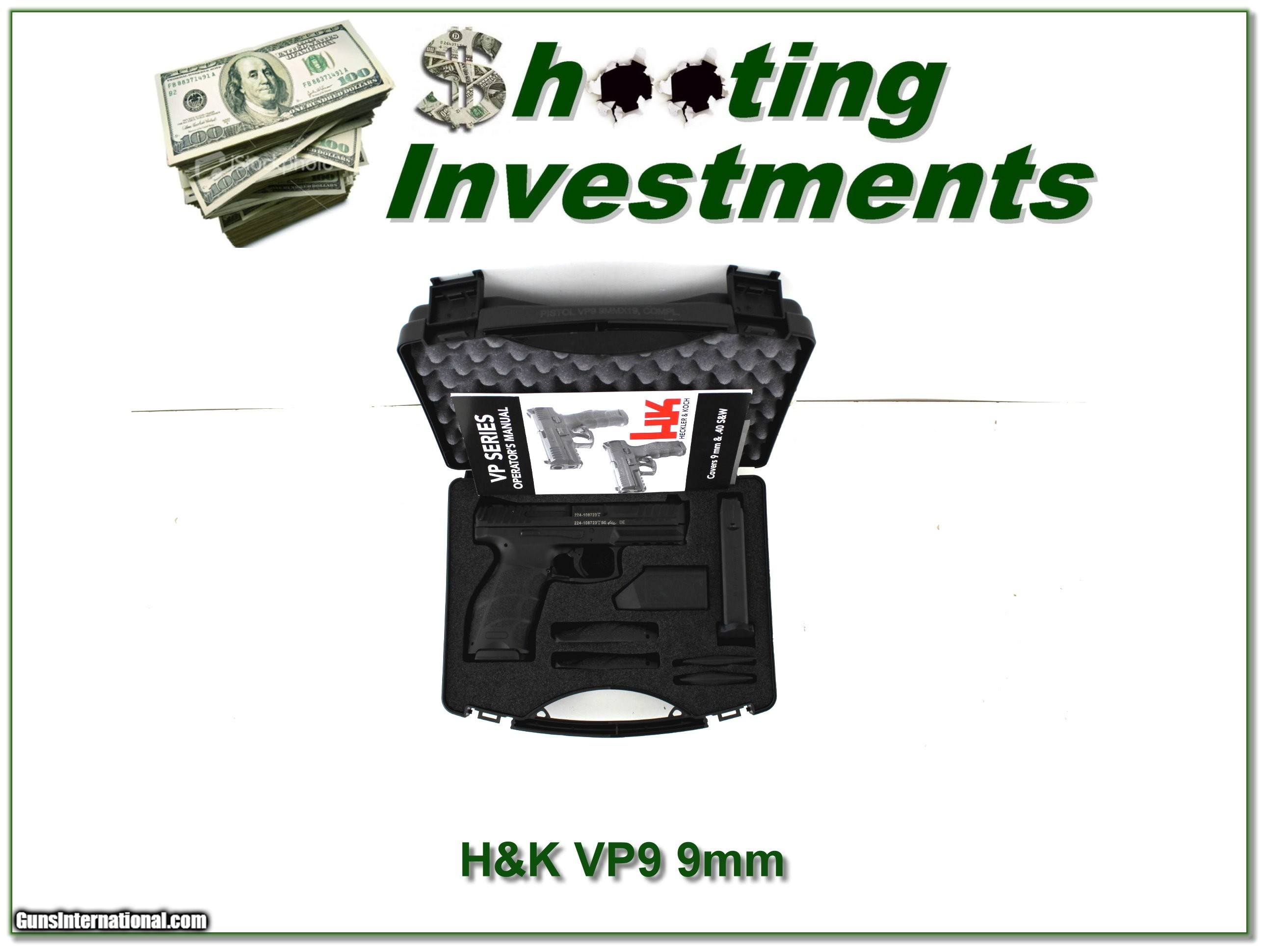 Description: Shooters and collectors, this is a new and unfired H&K VP9 in 9mm. It comes with 2 15 round magazines and it’s in the original case with all paper s as shown! I am selling this one on consignment and as such lay-a-way can’t be used. It does of course have the standard 3-day inspection. Shipping and insurance is $39. Please email me with any questions or larger pictures. (Consign your quality firearms with Shooting Investments for only 12%! Let me know if you have any you would like to sell!) 22-0815 Payment: Payment is by Money Order, Cashier’s Check or Personal Check. I can now also accept Credit Cards (MasterCard, Visa, Discover & American Express) with a 3% convenience fee. Shipping: The shipping charge will be listed in each description. It is $49 for most firearms. Some heavy guns or those insured for over $2000 will be higher. Shipments to Alaska and Hawaii are higher because air shipment is required. Most firearms are shipped on Tuesday and Thursday and usually in 5 days of receipt of payment. We package all shipments carefully and insure them. Optics are shipped Priority Mail and most other non-firearm shipments are shipped First Class. Returns: Our return policy is simple. If for any reason you are not pleased with your purchase, you may return your item for a full refund of purchase price. Ammunition cannot be returned. It is important to us that you are happy. Guns cannot be fired or dissembled before returning them and they must be returned in the same condition as received. Notification of a return must occur within 3 days of receipt at your dealer. Shipping, convenience and dealer fees are not refundable and are the responsibility of the buyer. Lay-a-way: If needed, we offer a 60 day lay-a-way option on most firearms. It is 1/3 now, 1/3 in 30 days and 1/3 in 60 days. Lay-a-way firearm sales are final and cannot be returned. If a lay-a-way is not completed the first payment cannot be refunded. Consigning your firearms with Shooting Investments: We will help you get top dollar for your firearms. While most local guns shops charge 20% or more, our fee is only 12% with a minimum of $75. At your local gun shop it might take months to sell. Selling on-line provides instant access to thousands of interested buyers. You won’t find any other on-line dealer willing to sell your firearms for only 12% or listing every gun on 3 separate s. Selling through an House typically costs the seller 15% and the buyer an addition 15% (so 30%) and you have to wait several months to sell and longer to receive funds. If properly priced, we will sell your firearms within a few weeks. Send us an email or give us a call and we’ll explain how easy it is for you to get top dollar. Trading: Trading for us is really just buying your gun to re-sell. If you have a gun you want to trade, please email a picture and we will let you know what we can give for it. You will always get more if we sell it for you on consignment. SOLD |