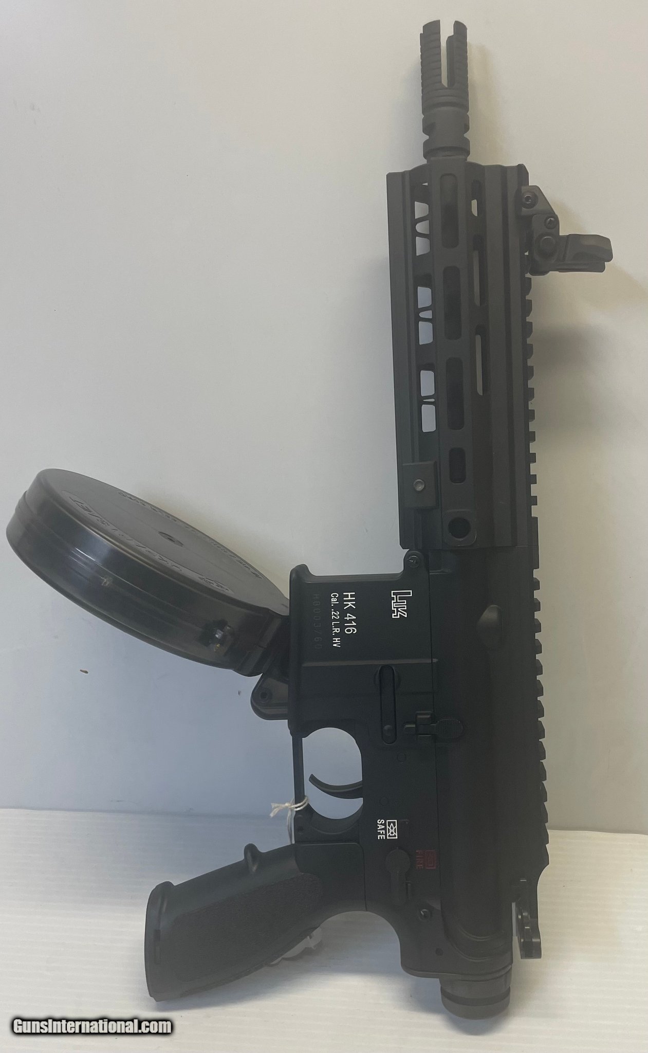 Description: Guns Listing ID: 507220 This pistol is in excellent condition as pictured. It comes with a 50 round drum. SOLD Manufacturer: HECKLER & KOCH Model: HK 416 Caliber Info: .22 LR Condition: Used - Non-Certified Barrels: 9 Action: SEMI AUTOMATIC Finish: black |