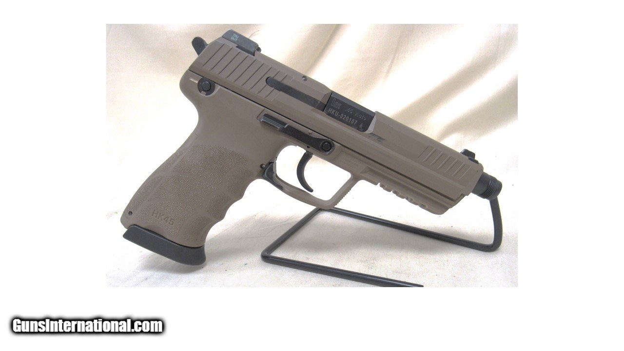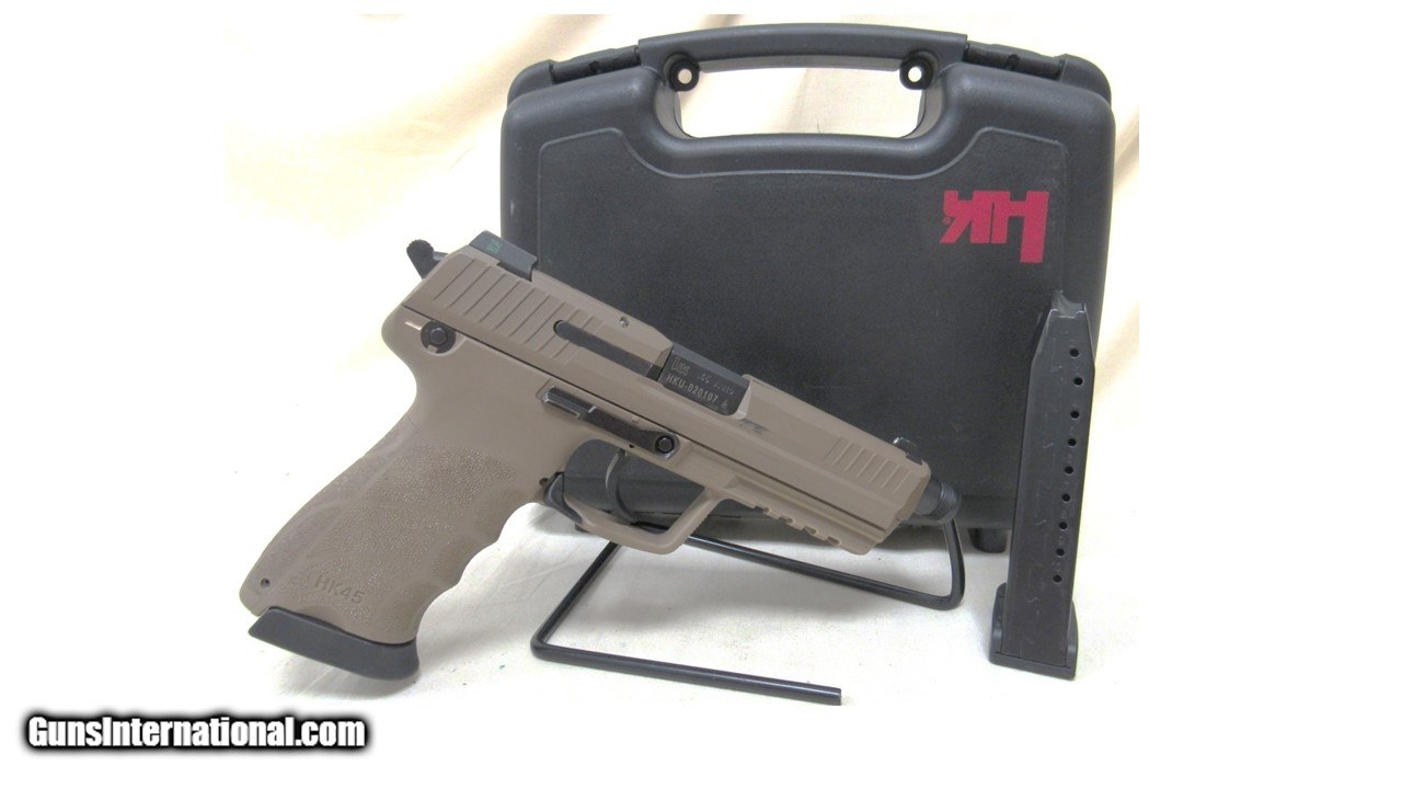 Description: Guns Listing ID: 479135 The Heckler & Koch HK-45 is a reliable full-size pistol designed for performance. Featuring a double action/single action mechanism, it operates smoothly with a 5\" threaded barrel for added versatility. The matte flat dark earth finish gives it a rugged look, while tritium night sights ensure visibility in low light. With a safety/decocker for secure handling, it comes with two 10-round magazines and is packaged in a durable hard case, making it an excellent choice for enthusiasts and/or professionals. SOLD Manufacturer: HECKLER & KOCH Model: HK 45 Condition: Used - Non-Certified Barrels: 5 Gauge Info: .45 ACP Finish: flat dark earth |