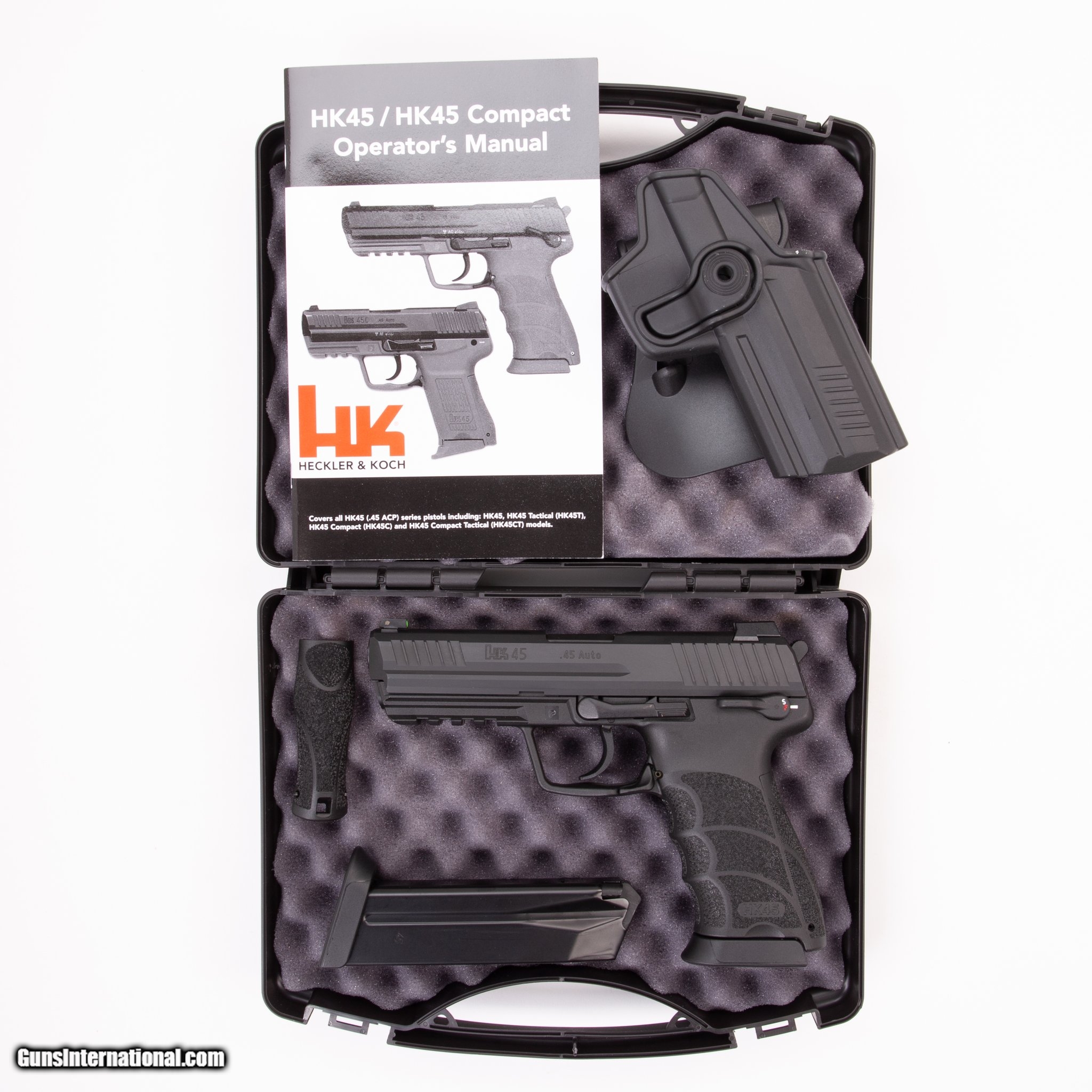 Description: Guns Listing ID: 465789 This H&K 45 features a safety decocker and a luminescent front sight. Purchase includes the original case, owner‚‚s manual, two 10-round magazines, and a right-handed IMI Defense paddle back holster. Get the best bang for your buck when you get a Certified Used Firearm . When you see the Certified Used stamp on any of our firearms, you can be confident that you‚‚re getting exactly what you want – a gun only in very good to excellent condition and held to the highest quality standard. All Certified Used Guns come with a ‚‚no questions asked‚‚ return policy . PLUS, ALL CERTIFIED USED GUNS SHIP F SOLD Manufacturer: HECKLER & KOCH Model: HK 45 Caliber Info: .45 ACP Condition: Used - Certified Barrels: 4.40 Action: SEMI AUTOMATIC Finish: BLACK Weight: 2 |