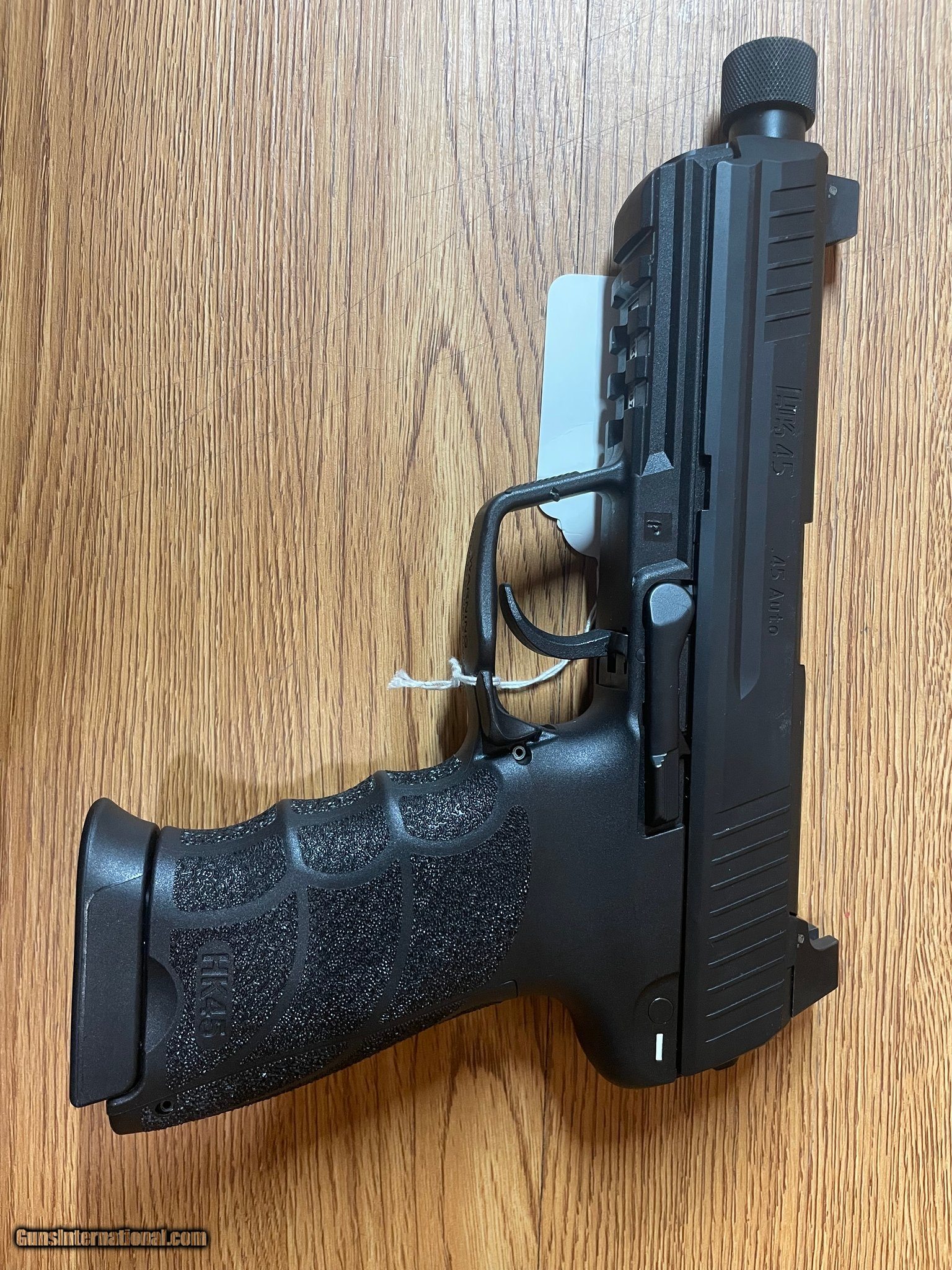 Description: Guns Listing ID: 495216 The Heckler & Koch HK45 is a high-performance semi-automatic pistol designed for military, law enforcement, and civilian use. It is chambered in .45 ACP, offering powerful stopping power with a design focused on accuracy, ergonomics, and reliability. Specifications: Caliber: .45 ACP Action: Short-recoil operated, semi-automatic Capacity: 10 rounds (standard magazine) Barrel Length: 5.5 inches Overall Length: 8.03 inches (204 mm) Height: 5.91 inches (150 mm) Width: 1.42 inches (36 mm) Weight: 31.2 oz (884 g) (with empty magazine) Frame Material: Polymer with steel inserts Slide Material: Machined steel with corrosion-resistant finish Trigger System: DA/SA (Double Action/Single Action) or LEM (Law Enforcement Modification) Safety Features: Ambidextrous manual safety/decocker (varies by model), firing pin block, and loaded chamber indicator Sights: Fixed or adjustable three-dot sights (tritium night sights optional) Accessory Rail: MIL-STD-1913 Picatinny rail for lights or lasers Condition – Light Wear This HK45 shows light wear, indicating minor cosmetic imperfections but remains fully functional. The slide may have slight finish wear, and the grip might exhibit minimal handling marks. Internals are in excellent condition, with no mechanical issues affecting performance. The barrel maintains strong rifling, ensuring accuracy and reliability. Perfect for those seeking a battle-proven, ergonomic, and powerful .45 ACP handgun with a reputation for durability and precision. comes with hard case. SOLD Manufacturer: HECKLER & KOCH Model: HK 45 Caliber Info: .45 ACP Condition: Used - Non-Certified Barrels: 5.5 Finish: black |