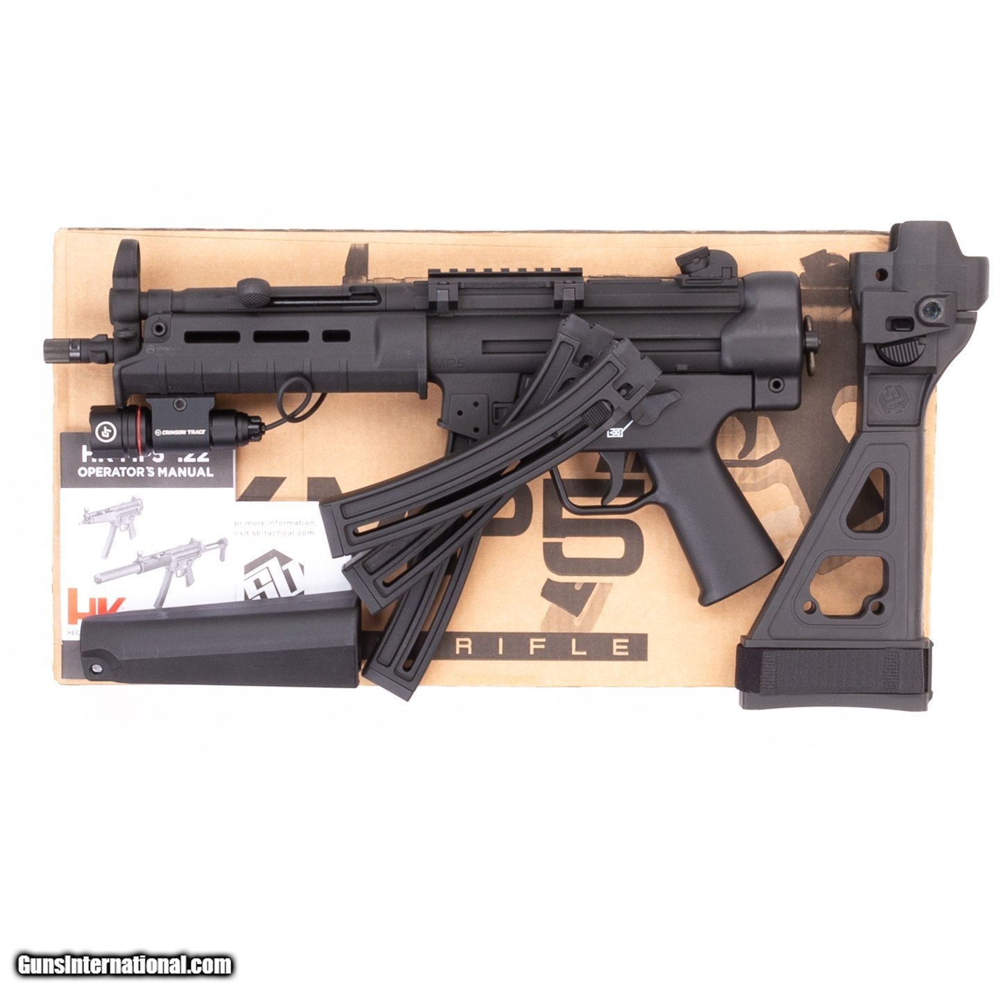 Description: Guns Listing ID: 1377773 This MP5 features one 25-round magazine, two 10-round magazines, the original box, owner‚‚s manual, a threaded barrel, a 3.5\" optic rail, a Magpul forearm, an SB folding brace and a Crimson Trace flashlight with the pressure pad. Get the best bang for your buck when you get a Certified Used Firearm . When you see the Certified Used stamp on any of our firearms, you can be confident that you’re getting exactly what you want – a gun only in very good to excellent condition and held to the highest quality standard. All Certified Used Guns come with a ‘no questions asked’ return policy . PLUS, ALL CERTIFIED USED GUNS SHIP FREE SOLD Manufacturer: HECKLER & KOCH Model: HK MP5 Caliber Info: .22 LR Condition: Used - Non-Certified Barrels: 9 BARREL Finish: BLACK |