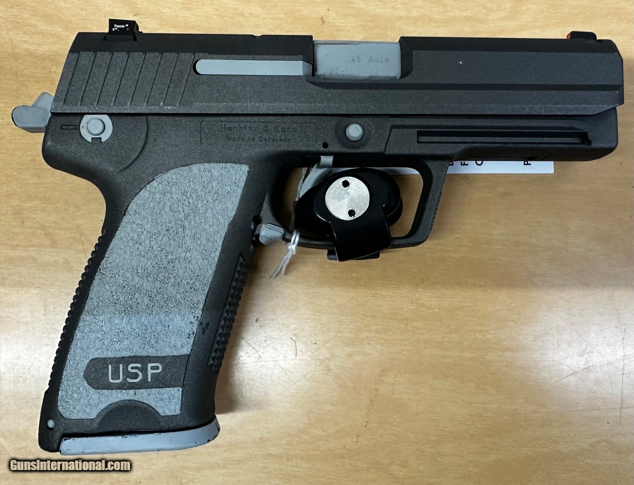 Description: Guns Listing ID: 995636 4.25 inch barrel, no case with one 12rd magazine. Grips were painted light shade of gray. SOLD Manufacturer: HECKLER & KOCH Model: HK USP Caliber Info: .45 ACP Condition: Used - Non-Certified Barrels: 4 BARREL Finish: GRAY |