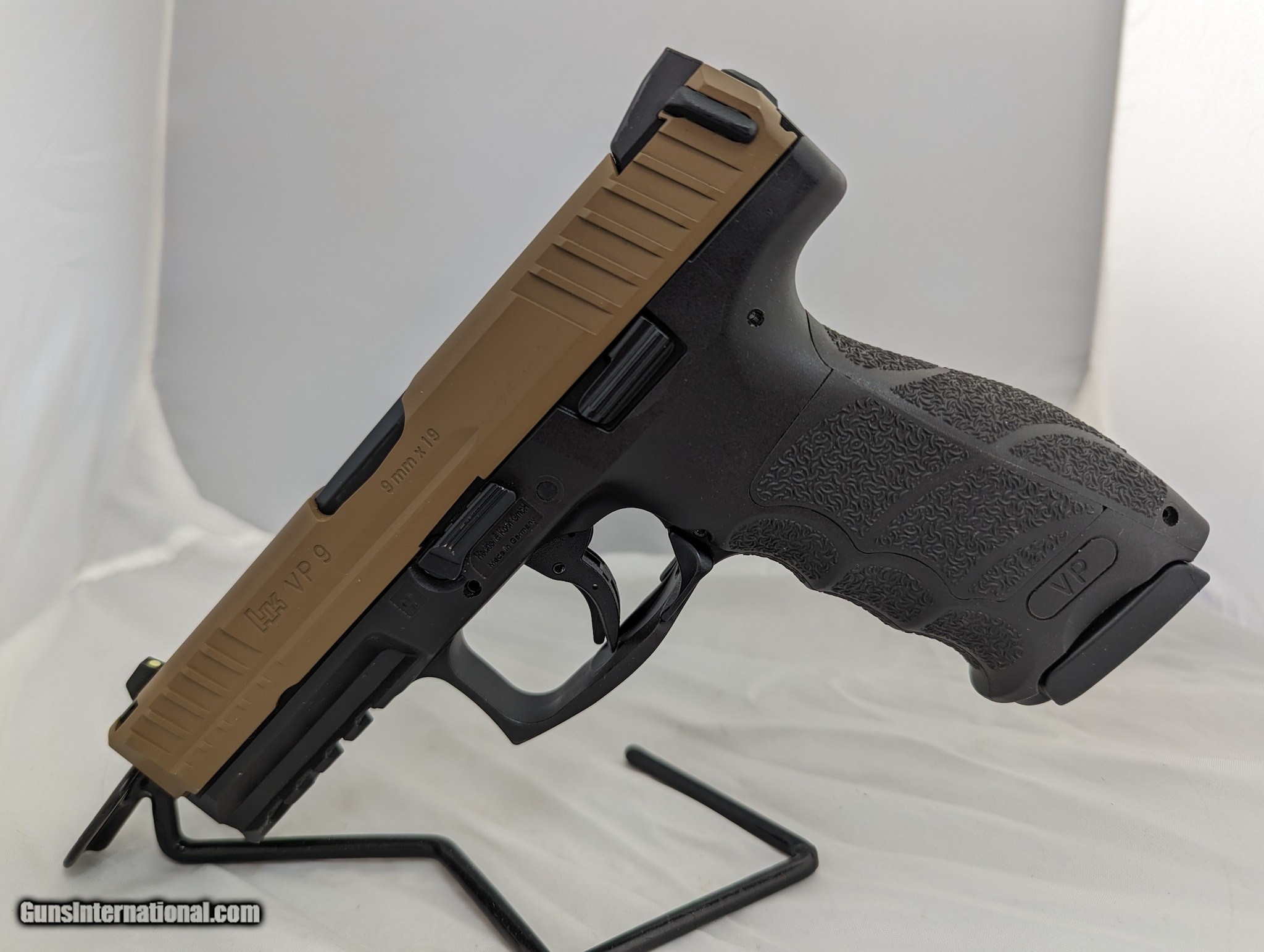 Description: Guns Listing ID: 1118817 Like new in box. Comes with 2 - 15rd magazines, mag loader, 2 backstraps, & 2 sets of grip panels. Features 4\" barrel, burnt bronze slide, serrated slide, ambi mag release, & lower accessory rail. SOLD Manufacturer: HECKLER & KOCH Model: HK VP9 Caliber Info: 9MM LUGER (9X19 PARA) Condition: Used - Non-Certified Barrels: 4 BARREL |