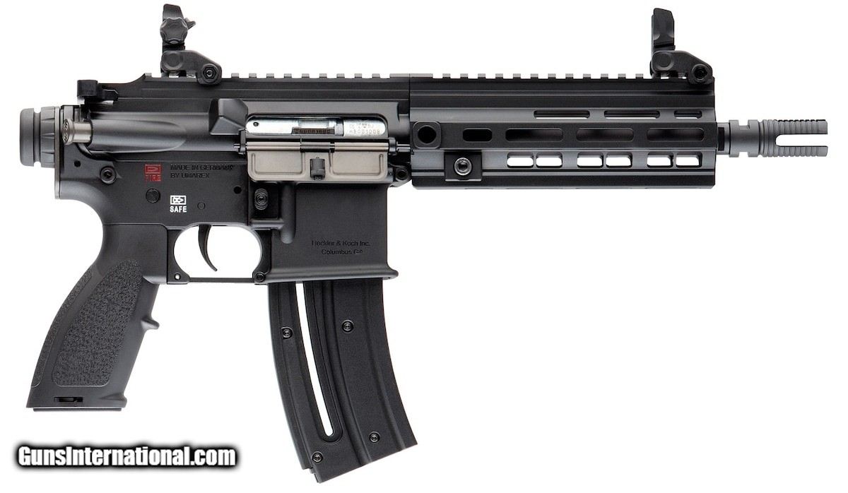 Description: Guns Listing ID: 7746 The semi-automatic blowback operated Heckler & Koch (HK) 416 (pistol) features a matte black finish 416 receiver, 9" barrel, adjustable front and rear sights, and pistol grip with storage compartment. This pistol also offers a 20-round magazine and short quad forend, and ships as a long gun. • 416 receiver • Adjustable sights • Pistol grip with storage compartment • Short quad rail SOLD Manufacturer: HECKLER & KOCH Model: HK416 Caliber Info: .22 LR Condition: new Barrels: 9 BARREL |