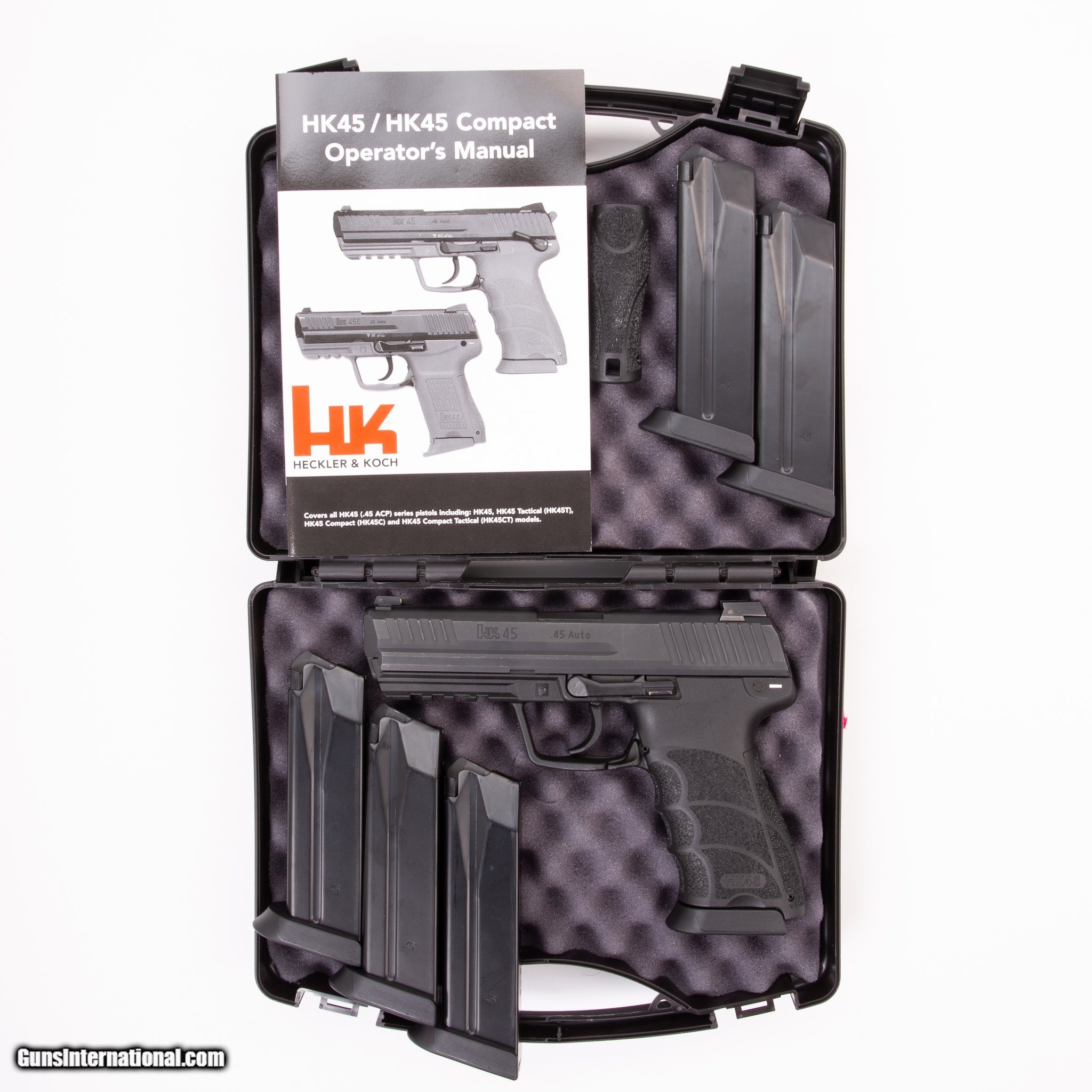 Description: Guns Listing ID: 459142 This H&K features six 10-round magazines, the original case, owner‚‚s manual, ambidextrous controls and 3-dot night sights. Get the best bang for your buck when you get a Certified Used Firearm . When you see the Certified Used stamp on any of our firearms, you can be confident that you’re getting exactly what you want – a gun only in very good to excellent condition and held to the highest quality standard. All Certified Used Guns come with a ‘no questions asked’ return policy . PLUS, ALL CERTIFIED USED GUNS SHIP FREE SOLD Manufacturer: HECKLER & KOCH Model: HK 45 Caliber Info: .45 ACP Condition: Used - Certified Action: SEMI AUTOMATIC Finish: BLACK |