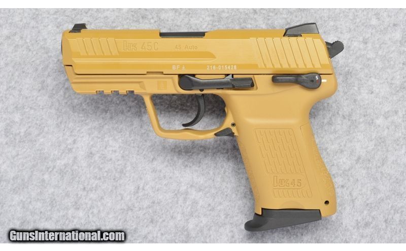 Description: Heckler & Koch HK45 in 45 ACP, Overall Excellent in Factory Box. SOLD Caliber Info: 45 ACP Metal Condition: Sand Finished Bore Condition: Bright and Sharp Barrels: 4 Inch, Polygonal Rifling Triggers: DA/SA Stock: Polymer Weight: 29 Ozs Sights: Fixed (Open square notch rear sight with contrast points) Item Location: Buda, TX |