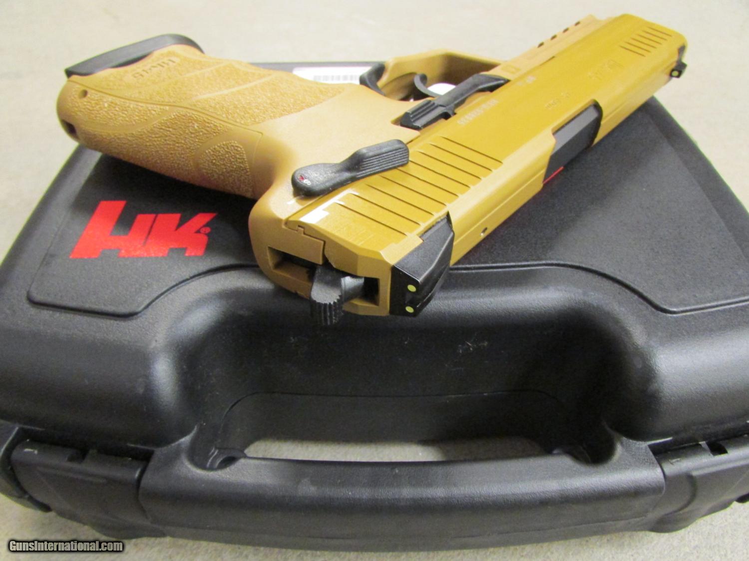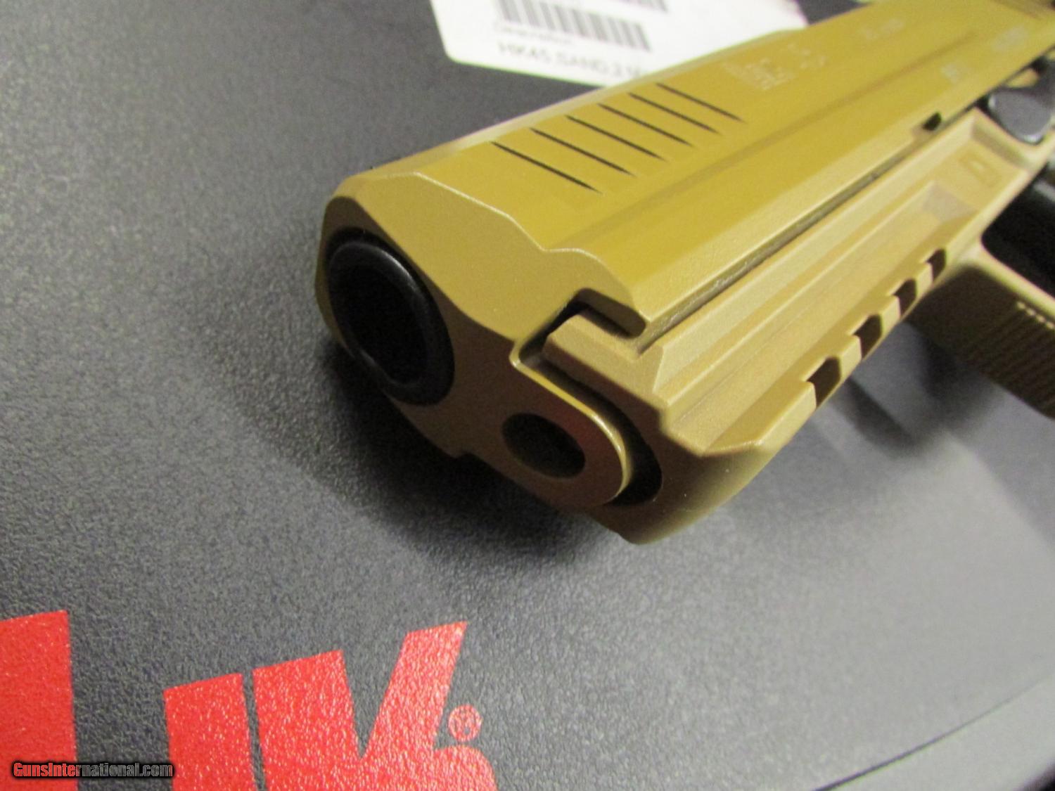 Description: Brand New in the Box, Ready to Ship. Buy It Now!! The HK45 was developed as a product improvement of the highly regarded USP45, first released in the 1995. The Caliber .45 ACP HK45 includes several user-inspired enhancements including changeable grip panels (backstraps), a Picatinny MIL-STD-1913 accessory rail, better ergonomics, and more ambidextrous controls. Using HK’s unique internal mechanical recoil reduction system reduces the recoil forces imparted to the weapon and shooter by as much as 30%, improving shooter control during rapid firing and increasing component service life. Capable of firing standard .45 ACP ball through +P ammunition, the HK45 combines the accuracy, modularity, reliability and minimum 20,000 round service life of the famed USP45 series with the improved ergonomics of the P2000 series pistols. Each HK45 comes standard with an extra backstrap; medium and small interchangeable backstraps ensure an optimal fit for most shooter’s hands and complement the ergonomic profile grip. An improved USP-style control lever, a combination safety and decocking lever, is frame mounted on the HK45 and is quickly accessible. The HK45 control lever has a positive stop and returns to the “fire” position after decocking. Well-suited for personal defense use, the HK45 is available in, or can be converted to, a wide variety of variants that use different trigger firing modes, including double action/single action (DA/SA) and DAO (double action only). The DAO mode uses the unique Heckler & Koch LEM (Law Enforcement Modification) firing system for improved double action trigger pull. Caliber: .45 ACP Barrel Length: 4.46 in. Magazine Capacity: (2) 10 Round Overall Length: 8.03 in. Overall Height: 5.91 in. Overall Width: 1.54 in. Sight Radius: 6.63 in. Weight: 31.2 oz Sights: Night Sights Finish: Sand Features: