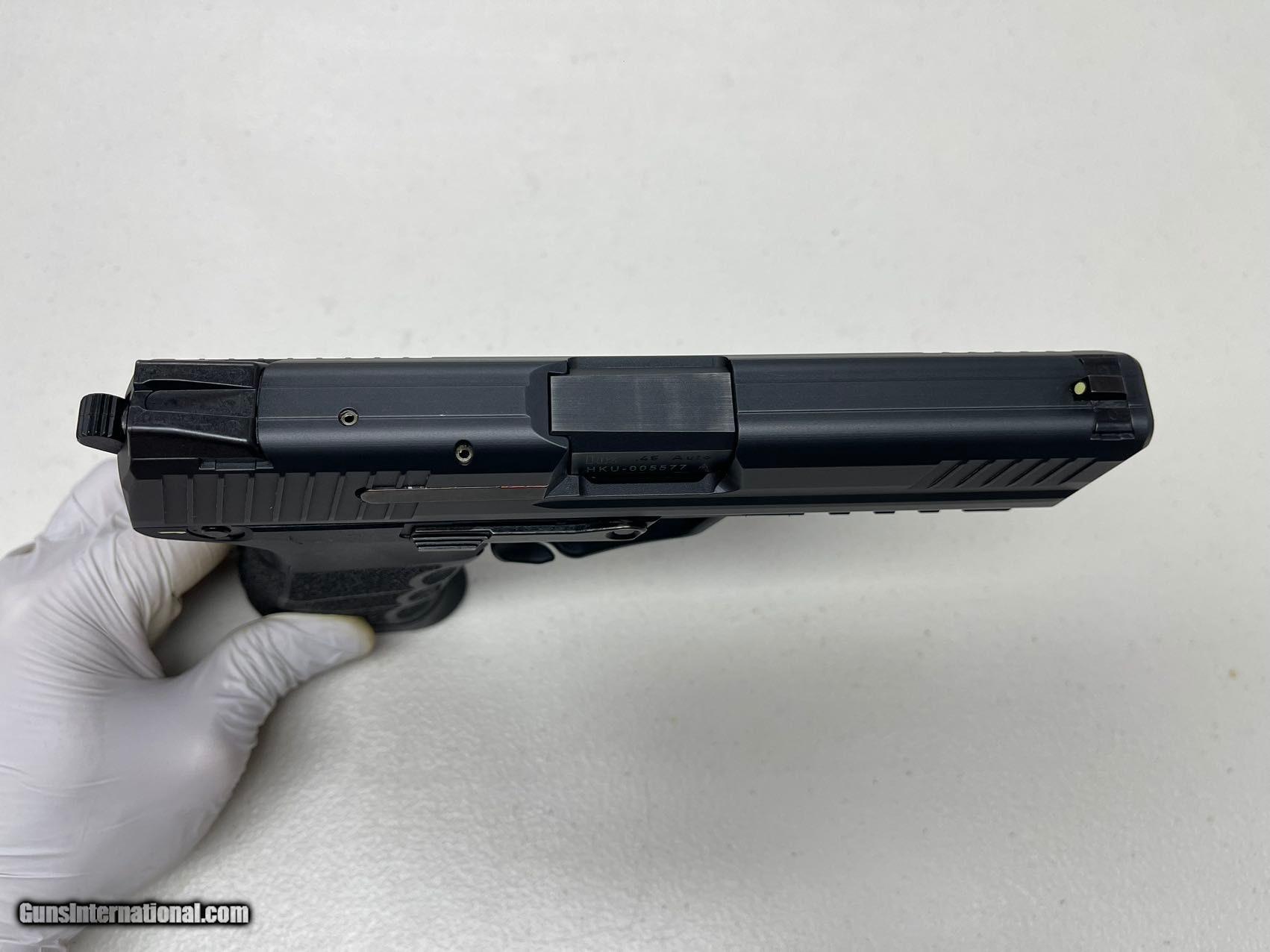 Description: Guns Listing ID: 861950 The HK45 was developed as a product improvement of the highly regarded USP45, first released in the 1995. The Caliber .45 ACP HK45 includes several user-inspired enhancements including changeable grip panels (backstraps), a Picatinny MIL-STD-1913 accessory rail, better ergonomics, and more ambidextrous controls. Along with the HK45 Compact, the HK45 was developed as a possible candidate for the Joint Combat Pistol (JCP) and Combat Pistol (CP) programs administered by the U.S. military in their search for a new service handgun to replace the 9-millimeter M9. These programs were suspended before completion and no pistols were selected. The HK45 uses an HK proprietary O-ring barrel for precise barrel-to-slide lockup and optimal accuracy. HK45 barrels are made using the famous HK cold-hammer forging process for superior performance. Using HK’s unique internal mechanical recoil reduction system reduces the recoil forces imparted to the weapon and shooter by as much as 30%, improving shooter control during rapid firing and increasing component service life. Capable of firing standard .45 ACP ball through +P ammunition, the HK45 combines the accuracy, modularity, reliability and minimum 20,000 round service life of the famed USP45 series with the improved ergonomics of the P2000 series pistols. HK45 models can be also be fitted with threaded barrels for use with muzzle mounted sound suppressors. TWO ROUNDS OF AMMUNITION FIRE TESTED DOES NOT COMES WITH THE ORIGINAL BOX COMES WITH 1 10 ROUNDS OF MAGAZINE FOR USED GUNS, PLEASE INSPECTED BY A PROFESSIONAL GUNSMITH BEFORE FIRING SOLD Manufacturer: HECKLER & KOCH Model: HK45 Caliber Info: .45 ACP Condition: Used - Non-Certified Barrels: 4.46 BARREL Finish: BLACK |