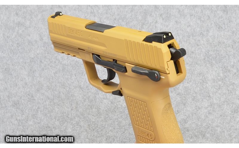 Description: Heckler & Koch HK45C in 45 ACP, Sand Finish, De-Cocking Safety. As new in factory box SOLD Caliber Info: 45 ACP Metal Condition: Excellent Bore Condition: Excellent Barrels: 4 Inch Triggers: DA/SA Stock: Polymer frame Weight: 30 Ozs Sights: Dovetailed High Contrast 3- Dot Sights Extras: Factory Carton and Papers Item Location: Buda, TX |