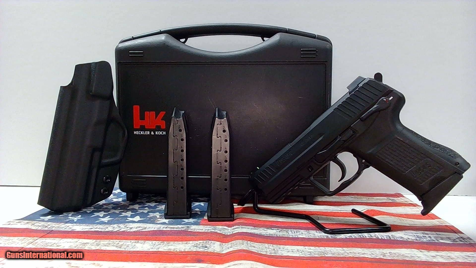 Description: Guns Listing ID: 524978 Pre-owned H&K compact pistol chambered in .45 acp. This pistol is in excellent condition. It appears unfired. The action is tight, the feed ramp and bore are in perfect condition and the finish is \"like new\". Includes hard case, three 8 round magazines and a OWB kydex style holster. The HK HK45C V1 is a compact and highly capable .45 ACP pistol designed for concealed carry and tactical applications. Featuring a 3.94-inch cold hammer forged barrel, 8+1 capacity, and a traditional double-action/single-action trigger system, this compact version of the HK45 delivers the same rugged reliability and precision in a more concealable package. Its black polymer frame and serrated steel slide offer durability and confident handling in any environment. Firearm as shown. The photos accompanying this listing are the best statement of condition; please review them carefully before purchasing. SOLD Manufacturer: HECKLER & KOCH Model: HK45C V1 Caliber Info: .45 ACP Condition: Used - Non-Certified Barrels: 3.9 Action: SEMI AUTOMATIC Finish: black |