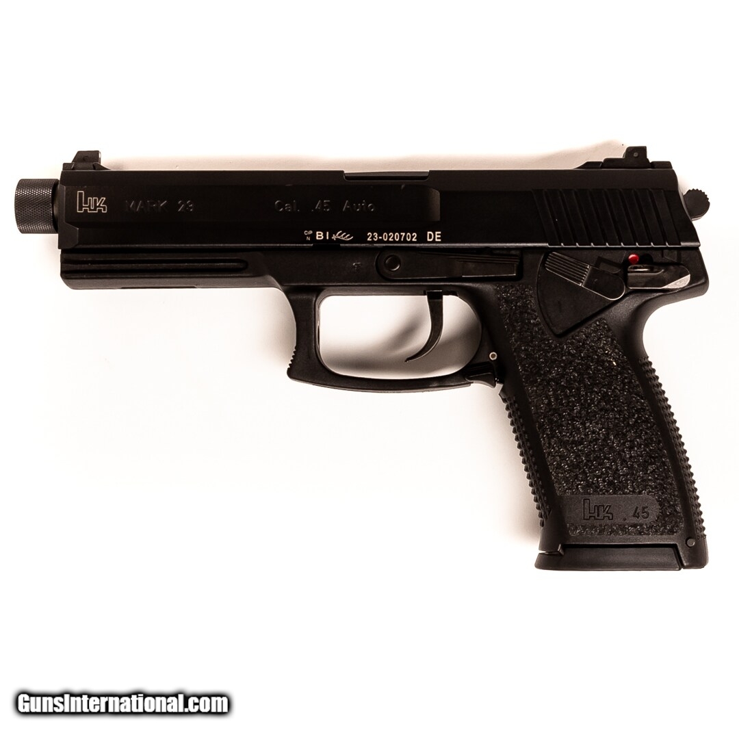 Description: Guns Listing ID: 641321 Simply put, if you‚‚re looking for one of the best combat handgun on the market this is it. The H&K MK23 has been tested and proven in combat for decades now by the most elite U.S. forces. When it comes to serious self-defense hardware, you pretty much can‚‚t beat the MK23. This MK23 has a threaded barrel with protector and includes the original case, manual, one 12-round magazine, lock-out key, and extra O-rings. Get the best bang for your buck when you get a Certified Used Firearm . When you see the Certified Used stamp on any of our firearms, you can be confident that you’re getting exactly what you want – a gun only in very good to excellent condition and held to the highest quality standard. All Certified Used Guns come with a ‘no questions asked’ return policy . PLUS, ALL CERTIFIED USED GUNS SHIP FRE SOLD Manufacturer: HECKLER & KOCH Model: MARK 23 Caliber Info: .45 ACP Condition: Used - Certified Barrels: 5.9 barrel Finish: BLACK |
