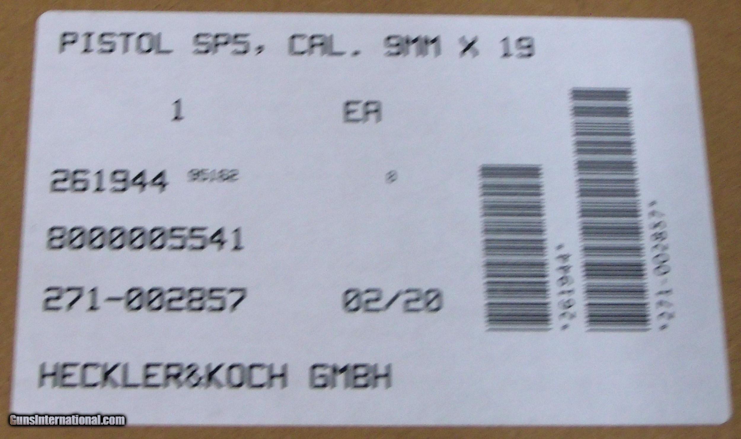 Description: Up for sale is a very nice(99% overall condition Heckler & Koch model SP-5 semi-auto tactical type pistol in 9mm cal. The pistol features a 9 inch barrel, black syn. folding arm brace, black syn.grip and forearm, black finished metal, and factory sights. The pistol comes with 2 30 round factory mags, factory soft case, sling, manual, and maintenance tool in org. factory box. J & M accepts Visa, MC, and Discover card via telephone at 205-695-7574 from 8AM to 5PM CDT, Mon-Sat and also Cert. Ck. or MO mailed to J & M Trading Post PO Box 1375 Vernon, AL 35592. The listed price reflects a 3% cash equivalent discount. A $45.00 shipping and ins. chg. will be added to the purchase price. The pistol must be shipped to a FFL dealer. SOLD Handgun Caliber: 9x19mm Parabellum (9mm Luger, 9x19mm NATO) Manufacturer: Heckler & Koch Model: SP-5 Barrel Length: 9 Condition: 99% |