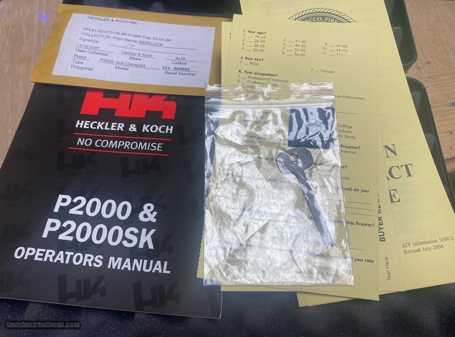 HECKLER & KOCH P2000SK LEM W/Factory Box & Accessories 9MM LUGER (9X19 PARA)
