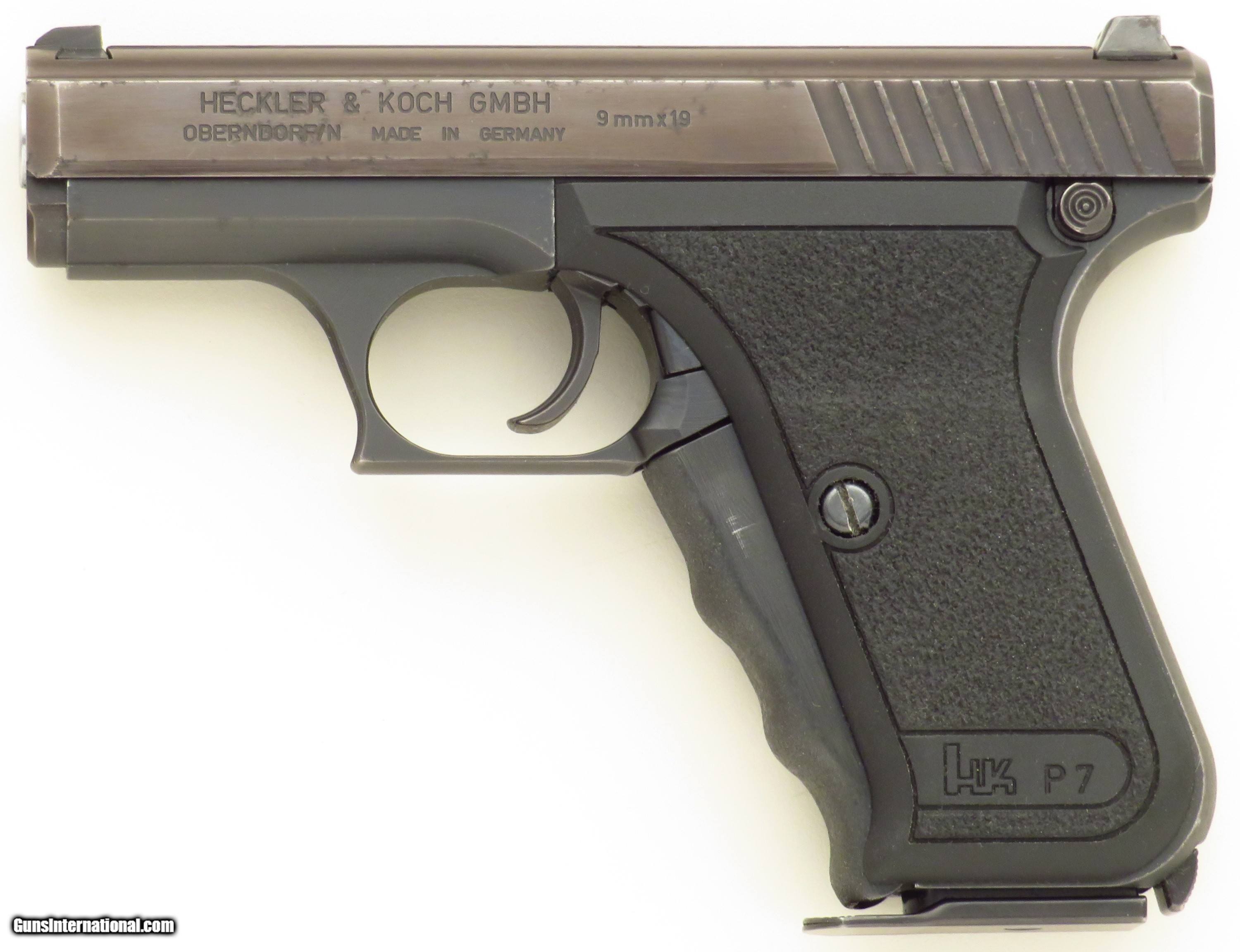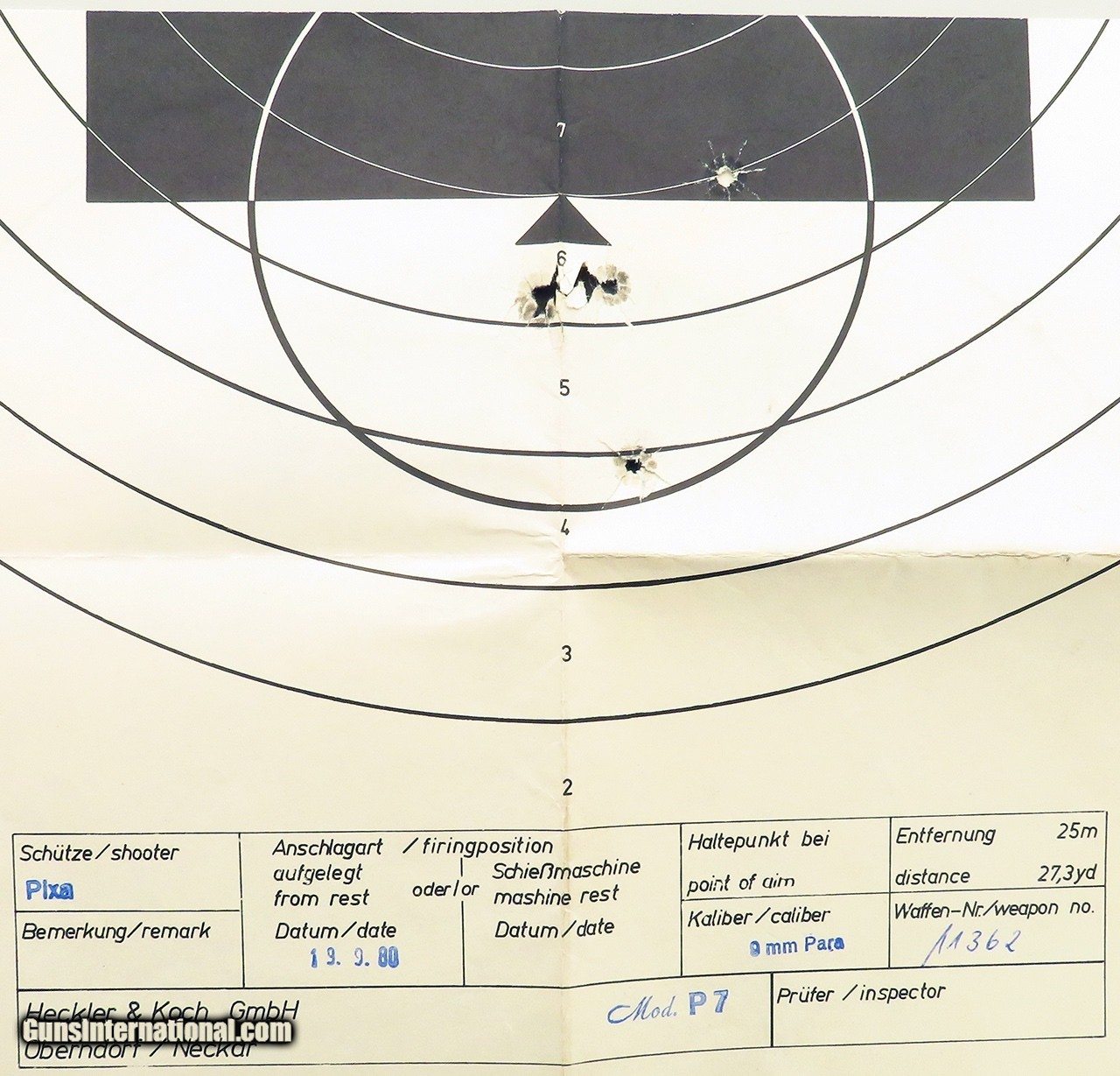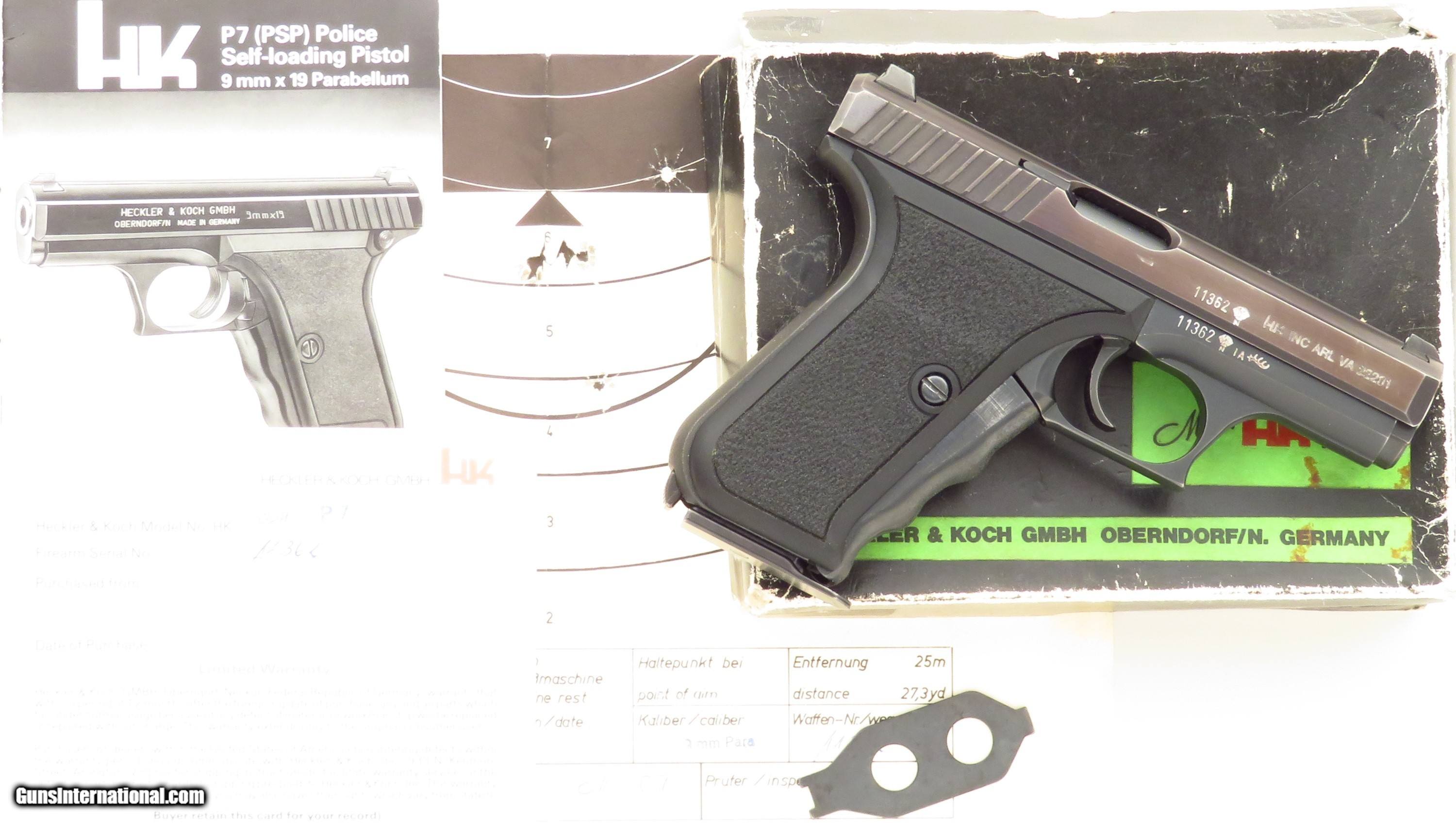 Heckler & Koch P7 9mm, 1980, box, target, papers, great bore, 80%, layaway