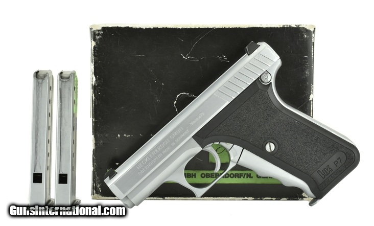 Description: Heckler & Koch P7 9mm caliber pistol. Early commercial model, not a police gun, with custom finish. Excellent condition with box, papers and 2 extra magazine.