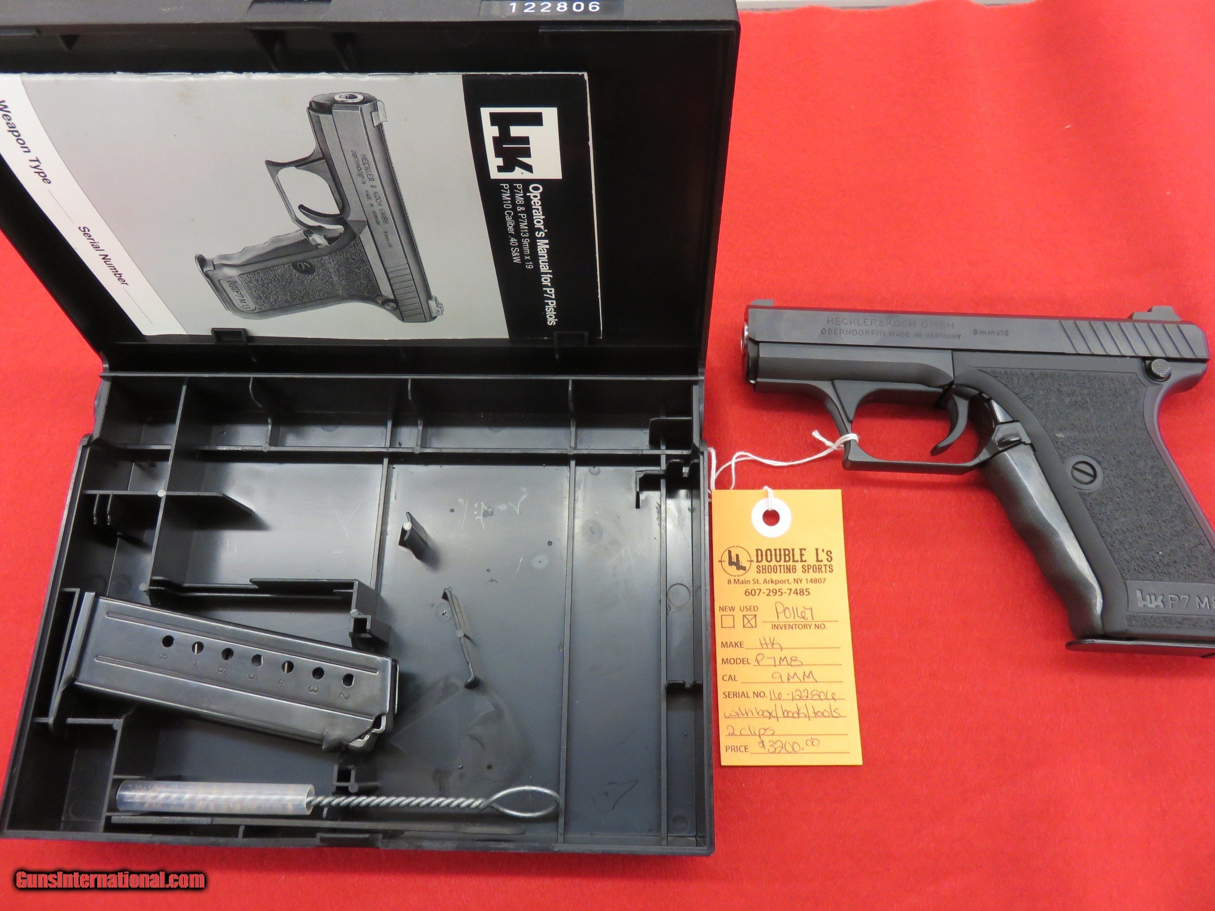 Description: Heckler & Koch P7 M8, 9MM, In serial number matching box, with owners manual, tools and extra mag. This was a one owner piece. A True collector piece. Overall condition as new. SOLD Manufacturer: H K Model: P7 M8 Caliber Info: 9MM Condition: 99% |