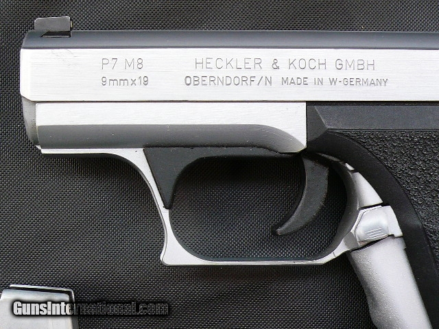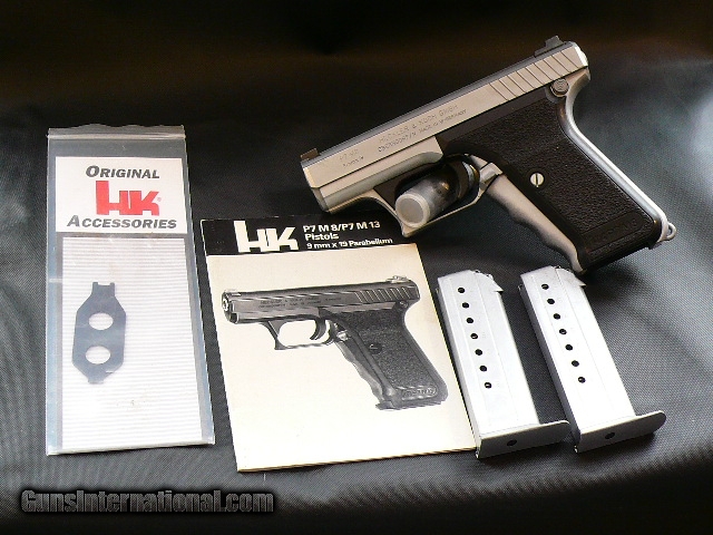 Description: HECKLER & KOCH P7 M8 NICKEL 9MM 1984 BOX (NO SERIAL NUMBER ON BOX), BOOKLET,TOOL & 2 MAGS. VERY NICE. FREE SHIPPING. CALL OR EMAIL WITH QUESTIONS. 440-341-0432 SALE PENDING SOLD |