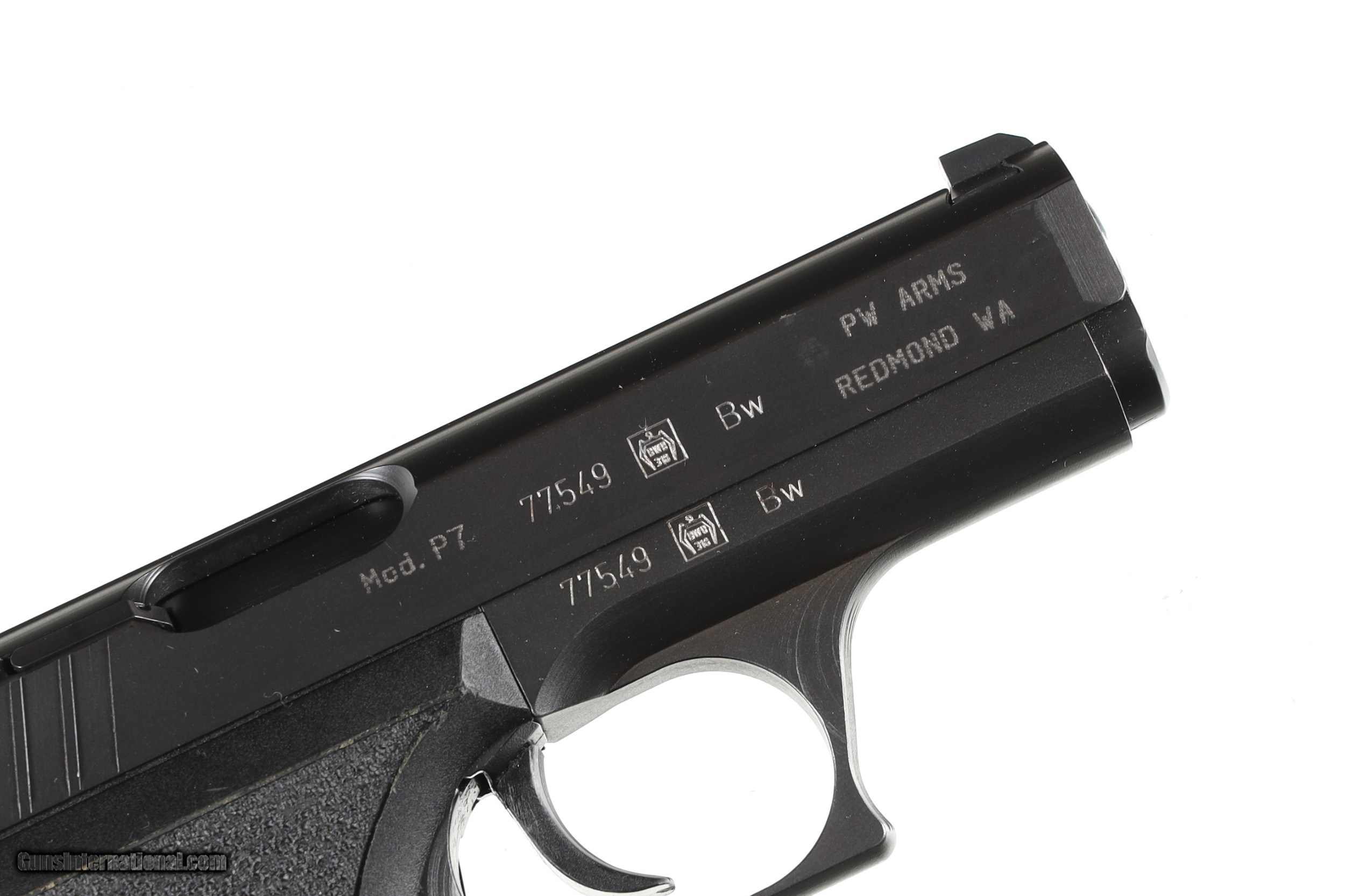 Description: Excellent plus overall condition, appears unfired, with matching factory case, manual, rod, tool, test target, and an extra magazine. • Free Shipping, No Credit Card Fees. • Lay-a-way available for this firearm. • 1/3 Down, a 1/3 in 30 Days 1/3 in 60 Days. SOLD Manufacturer: Heckler & Koch Model: P7 Serial Number: 77549 Barrel Length: 4 |