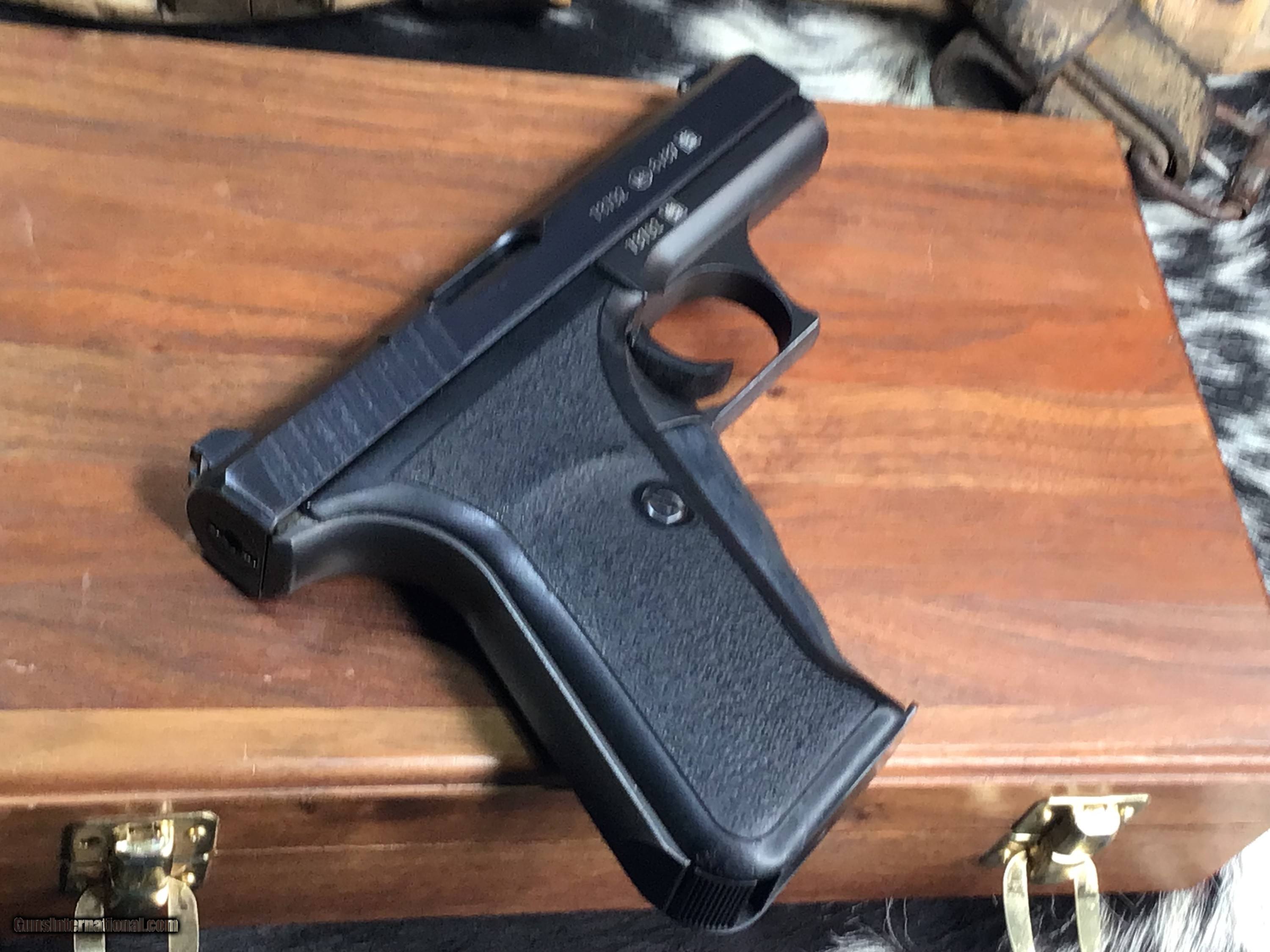 Description: Like new HK P7 PSP 9mm single stack semi auto in wood presentation case. Gun remains as new and appears to be unfired since factory. Two factory magazines in wood presentation case. I have carried this model for years and love how I can hit anything I aim at with confidence , unlike many of the other carry guns I've owned. Expensive, maybe,but what is you and your loved ones safety worth? Dumb question, right.? Call me if you have any questions about this models performance and reliability. A sidearm you should never sell. Add 3% if paying with credit card. Free shipping for all US Veterans. God Bless America from a proud American, and a Viet Nam Vet , thankful for our freedoms.. paid for by the Blood ,Sweat and Tears of our brave men and women in uniform. Ten Below Firearms is a Veteran owned and operated business. We specialize in out of production models of high quality firearms. We love to ship! We ship to all states where legal, just give us a call! Handguns normally ship for $35 and Long guns for $50 and up for extra length long guns. That's 2-3 day USPS Priority shipping, Delivery conformation and with tracking number. Optional Postal insurance is additional $1.75 per $100 and highly recommended. We are OPEN BY APPOINTMENT ONLY FOR IN PERSON VISITS, We trade, sometimes. All payments sent via mail must be received within five days of date of purchase or item will be relisted for sale. Layaway:If needed we offer a 60 day layaway program. Terms, 1/3 of purchase price down, 1/3 due in 30 days, and the final third to include card fees and shipping due at 60 days. Funds are non transferable and non refundable .Layaway is not available on negotiated prices. SOLD Handgun Caliber: 9x19mm Parabellum (9mm Luger, 9x19mm NATO) Manufacturer: Heckler & Koch Model: P7 Serial Number: 73792 Barrel Length: 4.1 inch Condition: Excellent Metal Condition: Excellent Bore Condition: Excellent Action: Semi auto Triggers: SA Finish: Black Sights: Fixed combat Manufacture Date: 1987 Extras: Mag Case: Presentation case Item Location: Mn |