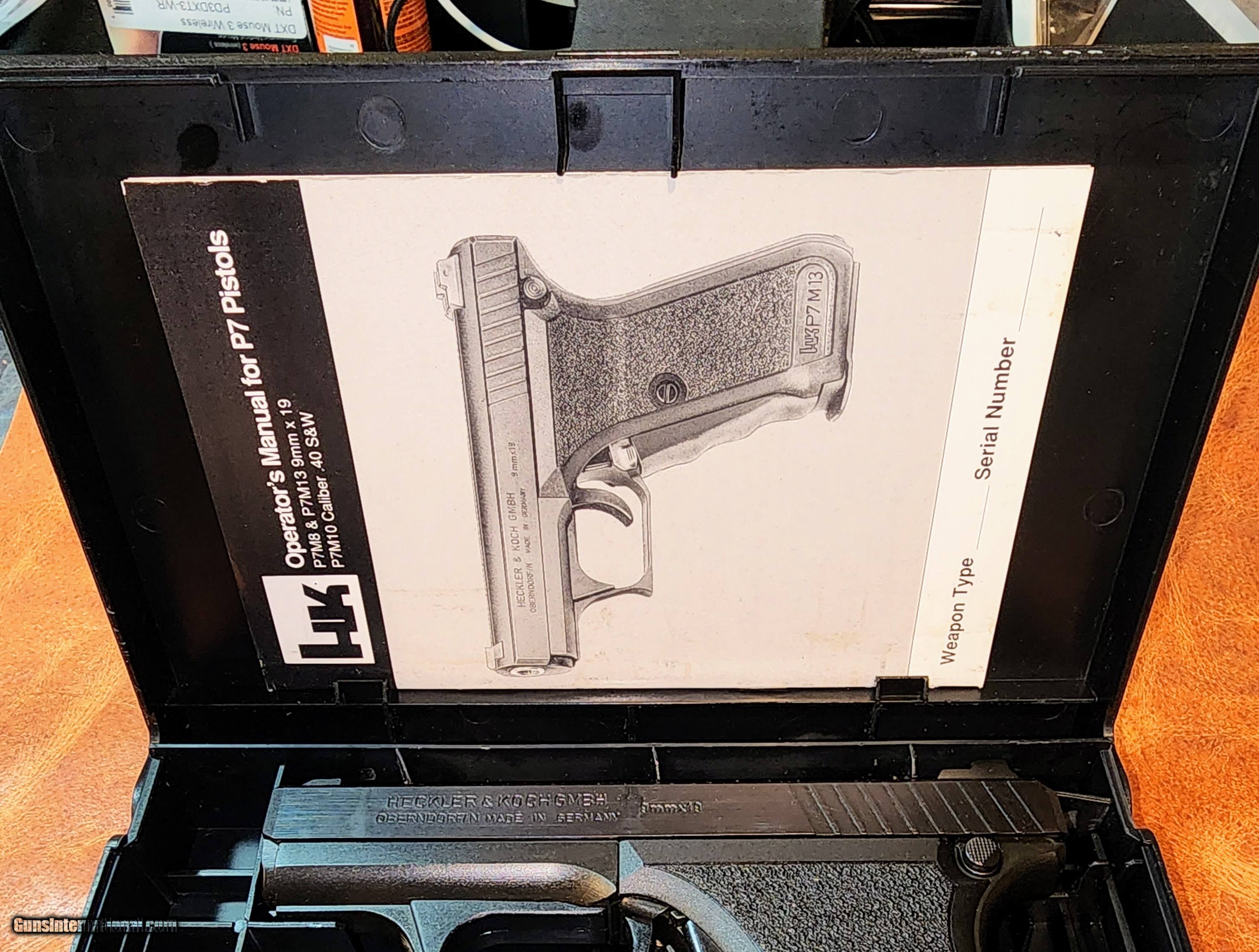Description: Heckler & Koch P7M8 9mm, NIB, numbers matching. Single Owner, purchased new in 1994, No rust, stored in climate-controlled safe in dry Salt Lake City climate. FEATURES: