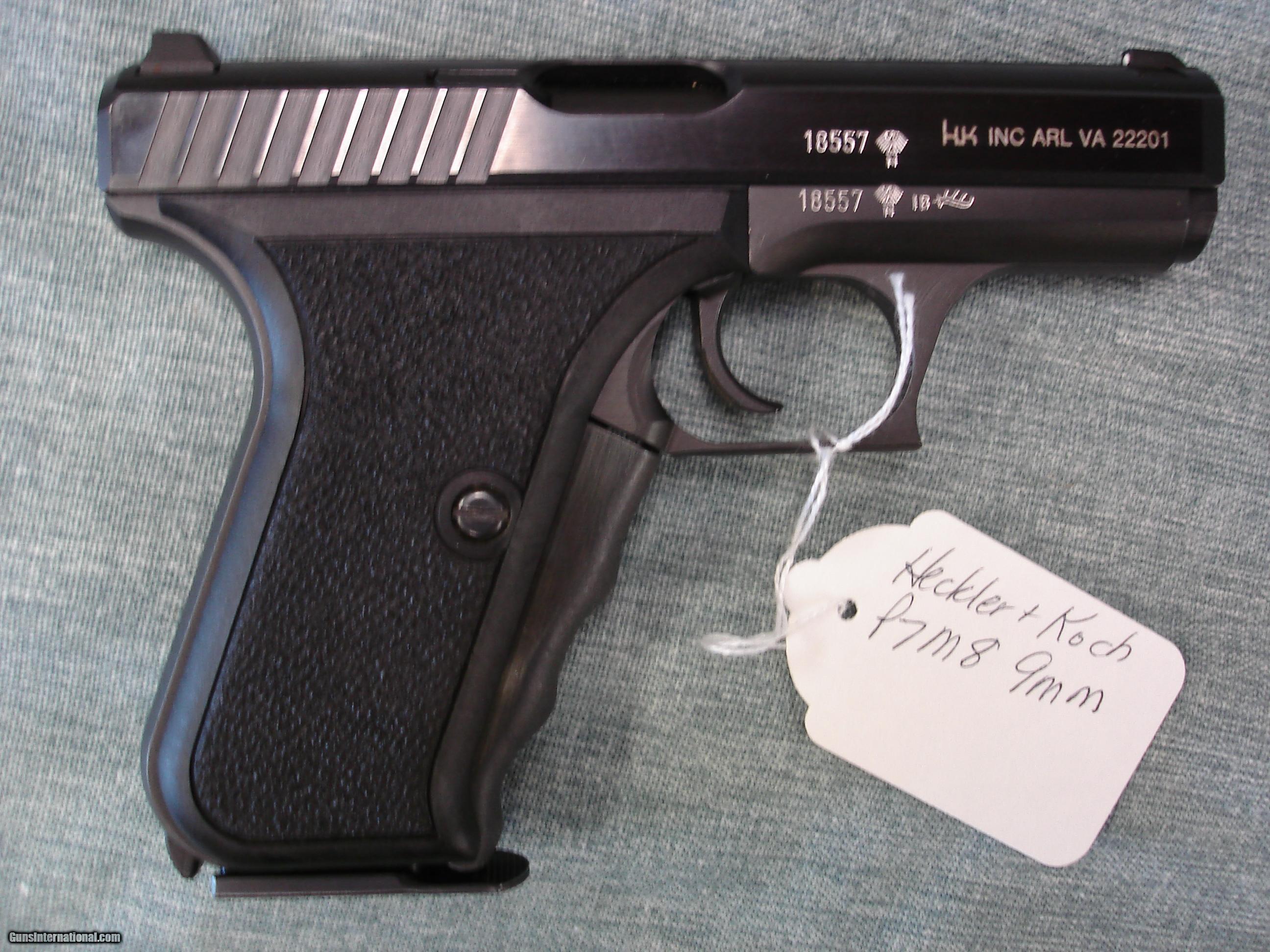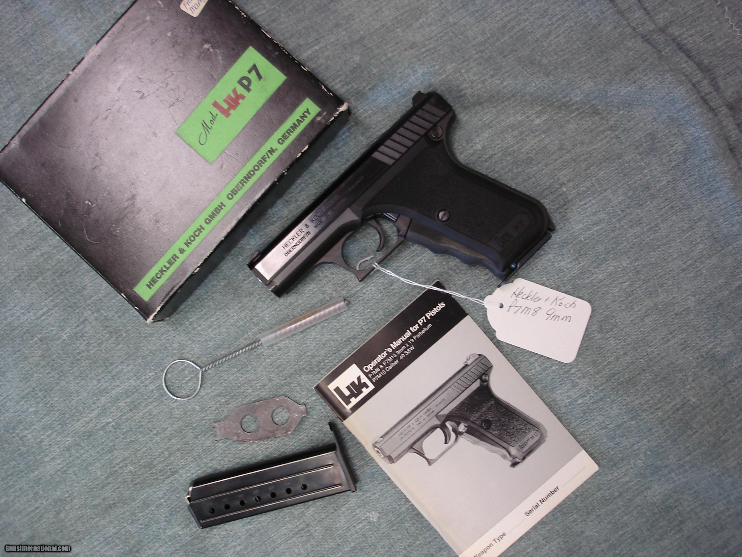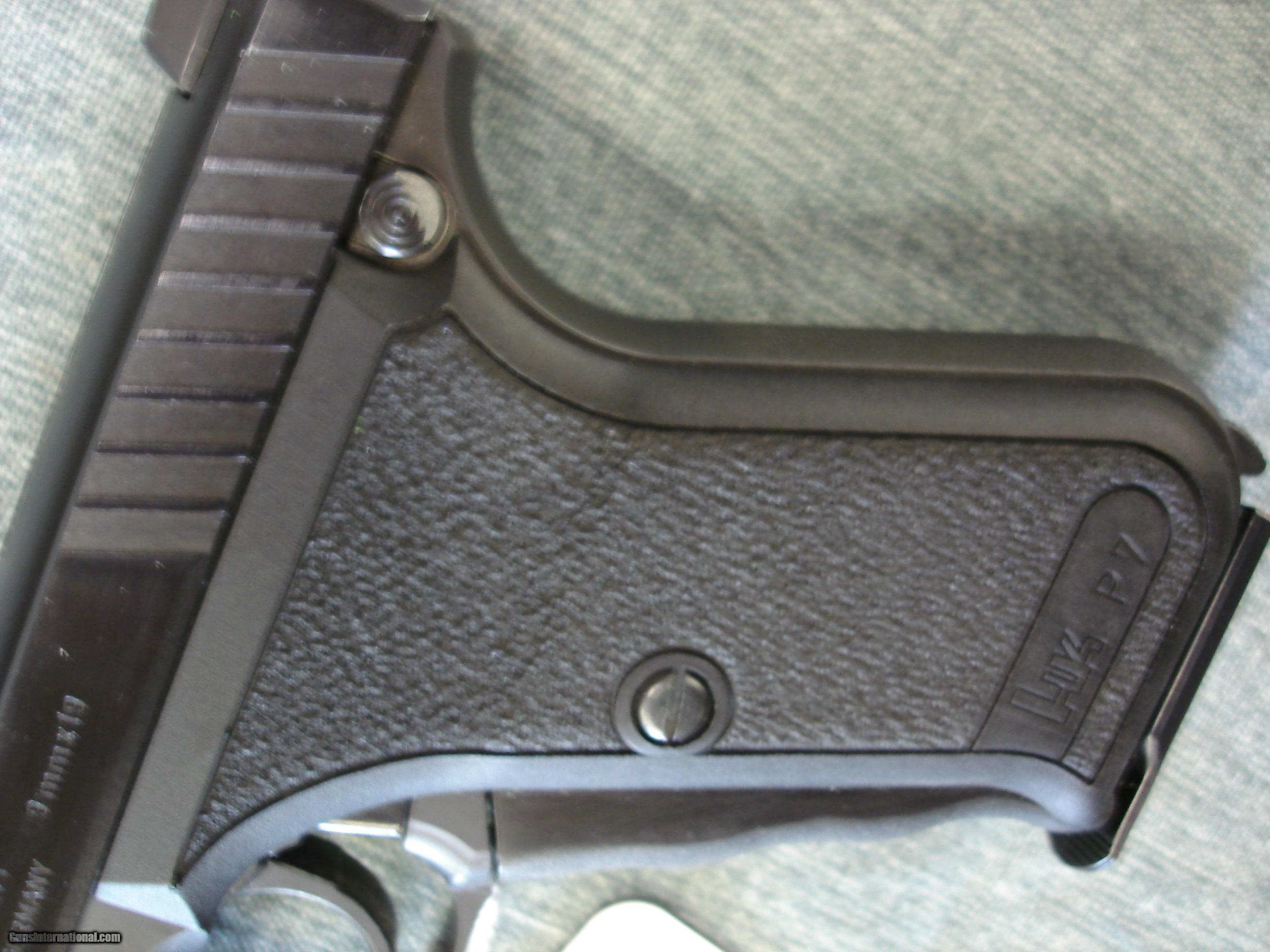 Description: Heckler & Koch P7. Blued. .9MM, With original box, extra mag, cleaning brush, and tool. Serial nos. 18557. Excellent condition. SOLD |