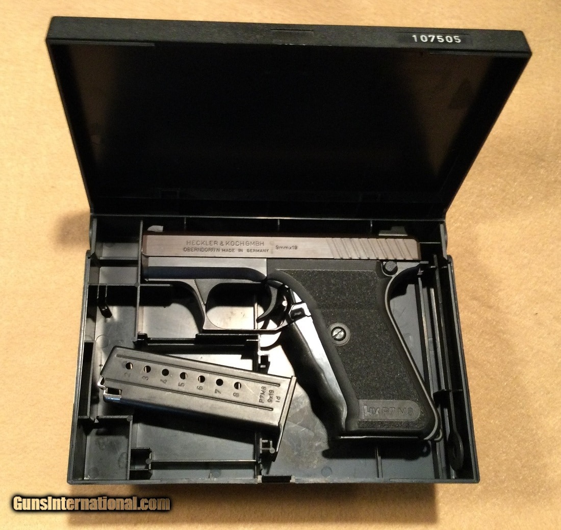 Description: Guns Listing ID: 530715 WITH THE ORIGINAL BOX AND TWO MAGAZINES. SOLD Manufacturer: HECKLER & KOCH Model: P7M8 Caliber Info: 9MM LUGER (9X19 PARA) Condition: Used - Non-Certified Barrels: 4 BARREL |