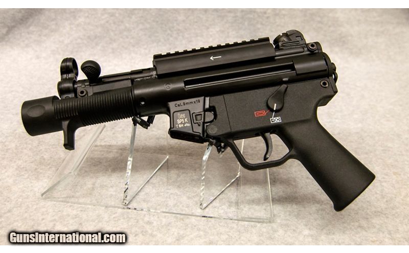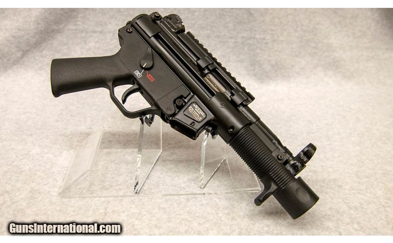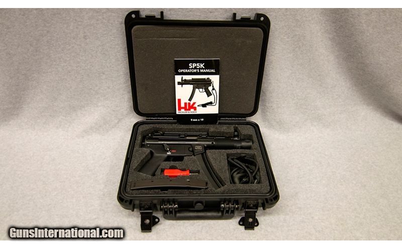 Description: Heckler & Koch SP5K, chambered in 9 mm. Features include: 4.53 (2016-19) in. barrel, 30 shot mag., MP5K type sights, semi-auto civilian version of the MP5K machine gun, roller bearing operation, top Picatinny rail, includes hard-shell case, black finish, 4 3/4 lbs. Hard case contains instruction manual, spare magazine, screwdriver, and sling 9mm Luger SOLD Chambers: 9 mm Metal Condition: Excellent Bore Condition: Excellent Barrels: 4.53' Sights: Circular Iron Item Location: Fort Mill, SC |