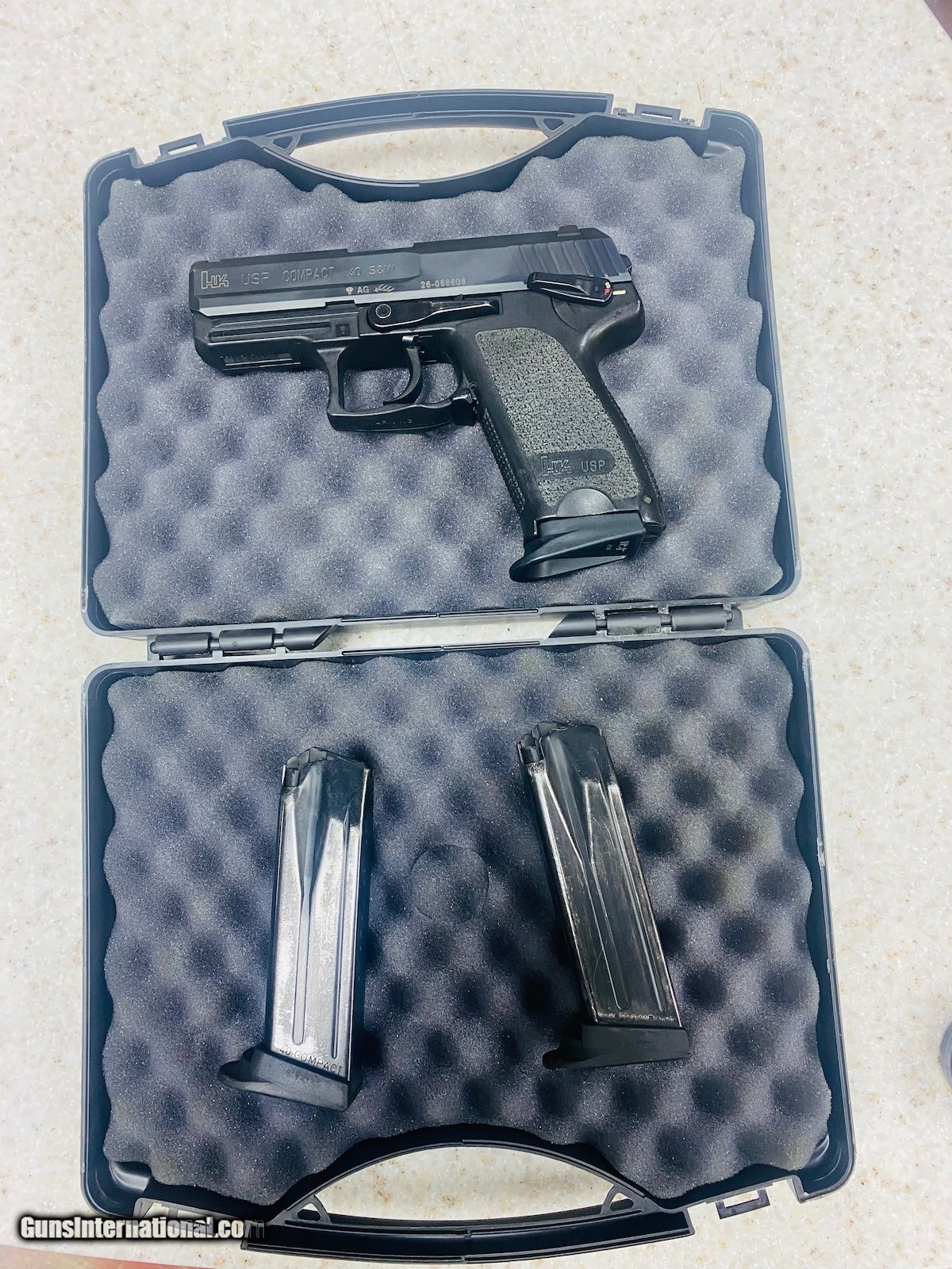 Description: Guns Listing ID: 632169 The HK USP Compact is a small frame pistol capable of firing the most powerful cartridges in .40 S&W. Based on the full-size USP models, these handy pistols combine compact size with optimum effective shooting performance. USP Compacts are smaller and lighter than large frame USPs. The reduction in trigger reach and grip circumference increases concealability and enhances shooting ergonomics. Unlike some subcompact semiautomatic pistols that use a difficult to shoot “two-finger grip” frame, the USP Compact uses a narrow, full-hand grip frame with a choice of interchangeable extended or flush-fitting magazine floorplates. This makes the pistol easy to shoot without sacrificing concealability. Like their large frame predecessors, USP Compacts are designed with the demanding needs of the law enforcement and military shooters in mind. Using a modified linkless Browning-type action, the USP Compact is built to take the punishment of high-energy +P loads. To reduce the length of the slide and barrel on the USP Compact, the mechanical recoil reduction system found on large frame USPs has been replaced by a specially designed flat compression spring contained in the captive recoil spring assembly by a polymer absorber bushing. Service life is still engineered to exceed 20,000 rounds. Easy to shoot, simple to maintain; the USP Compact is a reliable, safe, accurate, and highly concealable pistol. SOLD Manufacturer: HECKLER & KOCH Model: USP 40 COMPACT Caliber Info: 40 S&W Condition: Used - Non-Certified Barrels: 3.58 BARREL Finish: BLUED |