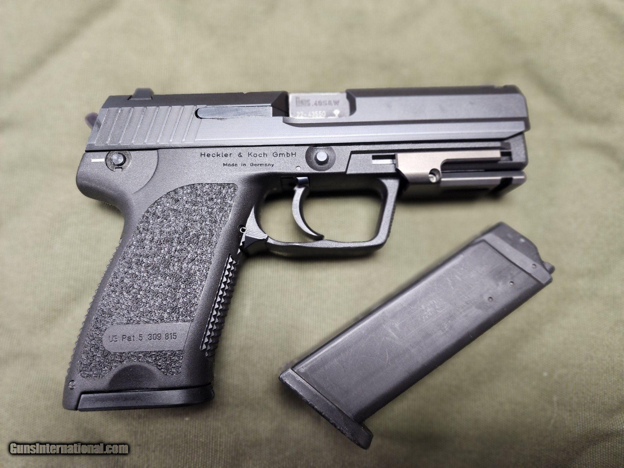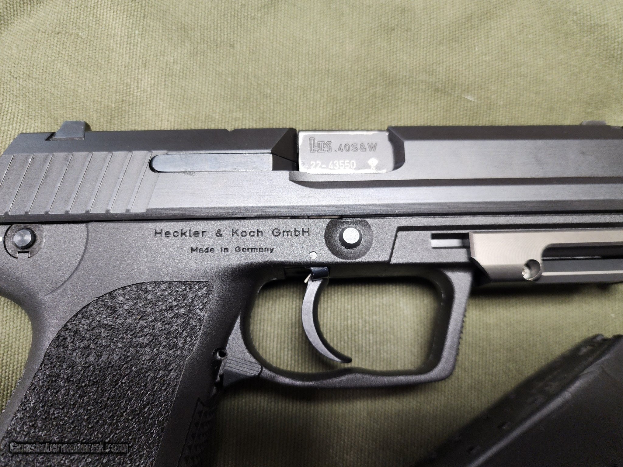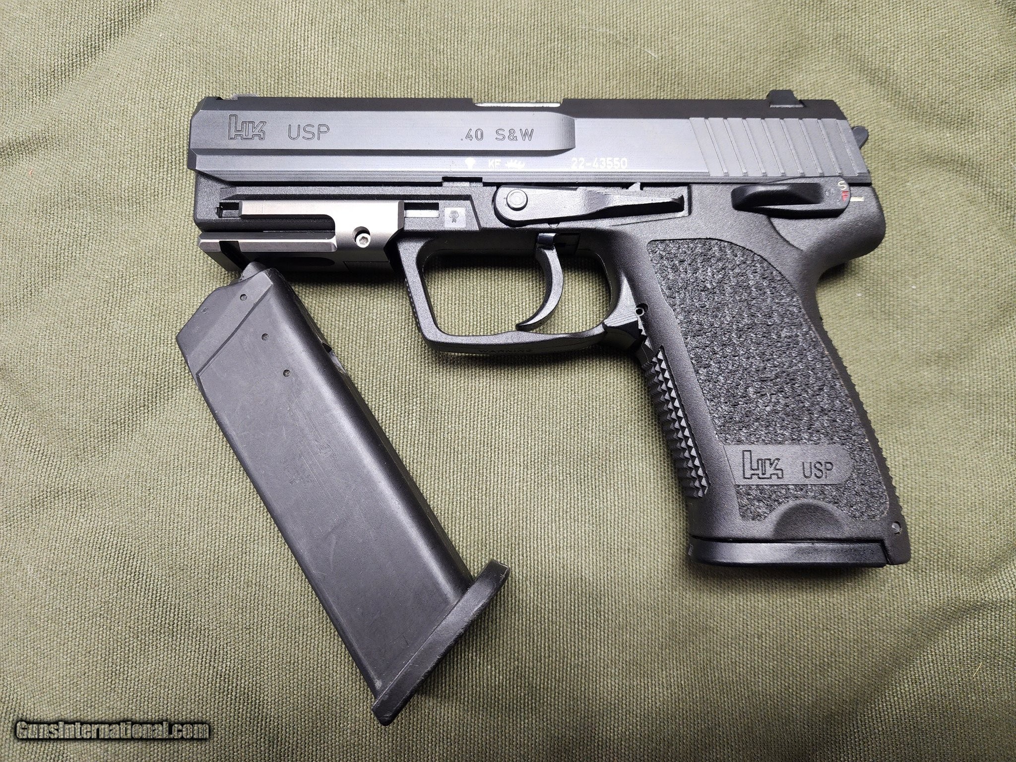 Description: Guns Listing ID: 569665 The Heckler & Koch USP (.40 S&W) with a 4.0\" barrel is a rugged duty-grade pistol built for reliability, controllability, and long service life. The USP’s proven DA/SA operating system and robust construction make it a favorite among shooters who want a confidence-inspiring full-size handgun that performs under real use. This example is in very good condition, showing light handling wear consistent with normal use and no functional issues observed. The pistol features ambidextrous controls and a user-friendly decocker/safety, plus an integral accessory rail for lights or lasers — a practical choice for range use, duty, or home defense. ? Caliber: .40 S&W ? Barrel Length: 4.0\" ? Action: Double-Action / Single-Action (DA/SA) with decocker/safety ? Frame / Slide: Polymer frame with steel slide (black finish) ? Sights: Fixed 3-dot style sights (see photos) ? Controls: Ambidextrous magazine release and safety/decocker where applicable ? Accessory: Surefire rail mount ? Condition: Very Good — light surface wear, well maintained, mechanically sound ? Includes: Two magazines (as shown in photos) A solid, service-grade pistol — dependable, ergonomic, and ready to perform at the range or in the field. SOLD Manufacturer: HECKLER & KOCH Model: USP Caliber Info: .40 S&W Condition: Used - Non-Certified Barrels: 4" BARREL Action: SEMI AUTOMATIC Finish: black blued |