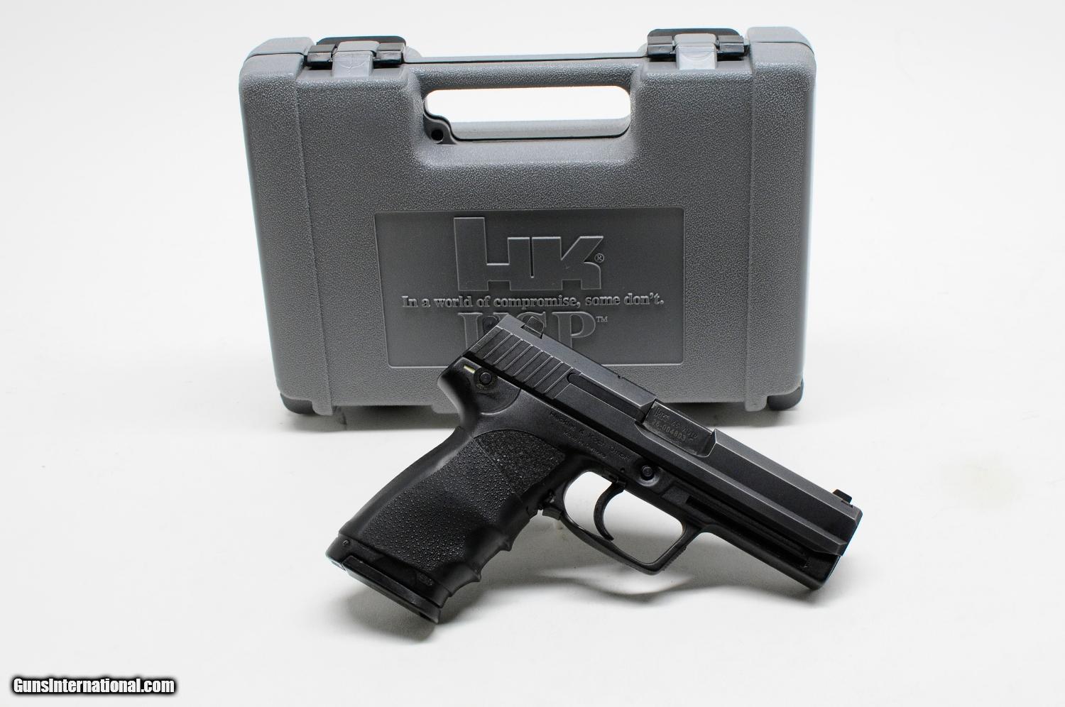 Description: Heckler & Koch USP 45 Auto. Like New In Case. Test Fired Only. PM Collection 'Originally designed for the American market, the USP (Universal Self-loading Pistol) has found international acceptance as an accurate and ultra-reliable handgun. Features favored by U.S. law enforcement and military users provided much of the design criteria for the USP. The controls are uniquely American, influenced by such famous designs as the Government Model 1911 pistol. All USPs use a fiber-reinforced polymer frame stiffened by stainless steel inserts at areas subject to stress and friction. HK pioneered this use of polymer materials in the production of handguns more than 30 years ago with the development of the VP70Z and P9S pistols. The USP control lever, a combination safety and decocking lever, is frame mounted and quickly accessible, unlike the slide-mounted safeties common on many semi-automatic pistols. Using a modified Browning-type action with a special patented recoil reduction system, the USP recoil reduction system reduces recoil effects on pistol components and also lowers the recoil forces felt by the shooter. This same recoil reduction system has been tested and proven in the HK Mark 23 pistol developed for the U.S. Special Operations Command. The USP recoil reduction system is insensitive to ammunition types and requires no special adjustment or maintenance. It functions effectively in all USP models. The modular design of the USP’s internal components allows the control lever function to be switched from the left to the right side of the pistol for left-handed shooters. The USP can also be converted from one type oaf trigger firing mode to another. This includes combination double-action and single-action (DA/SA) modes and double action only (DAO) modes. The USP is available in nine trigger/firing mode configurations and three calibers. 9mm, .40 S&W and .45 ACP. Features: