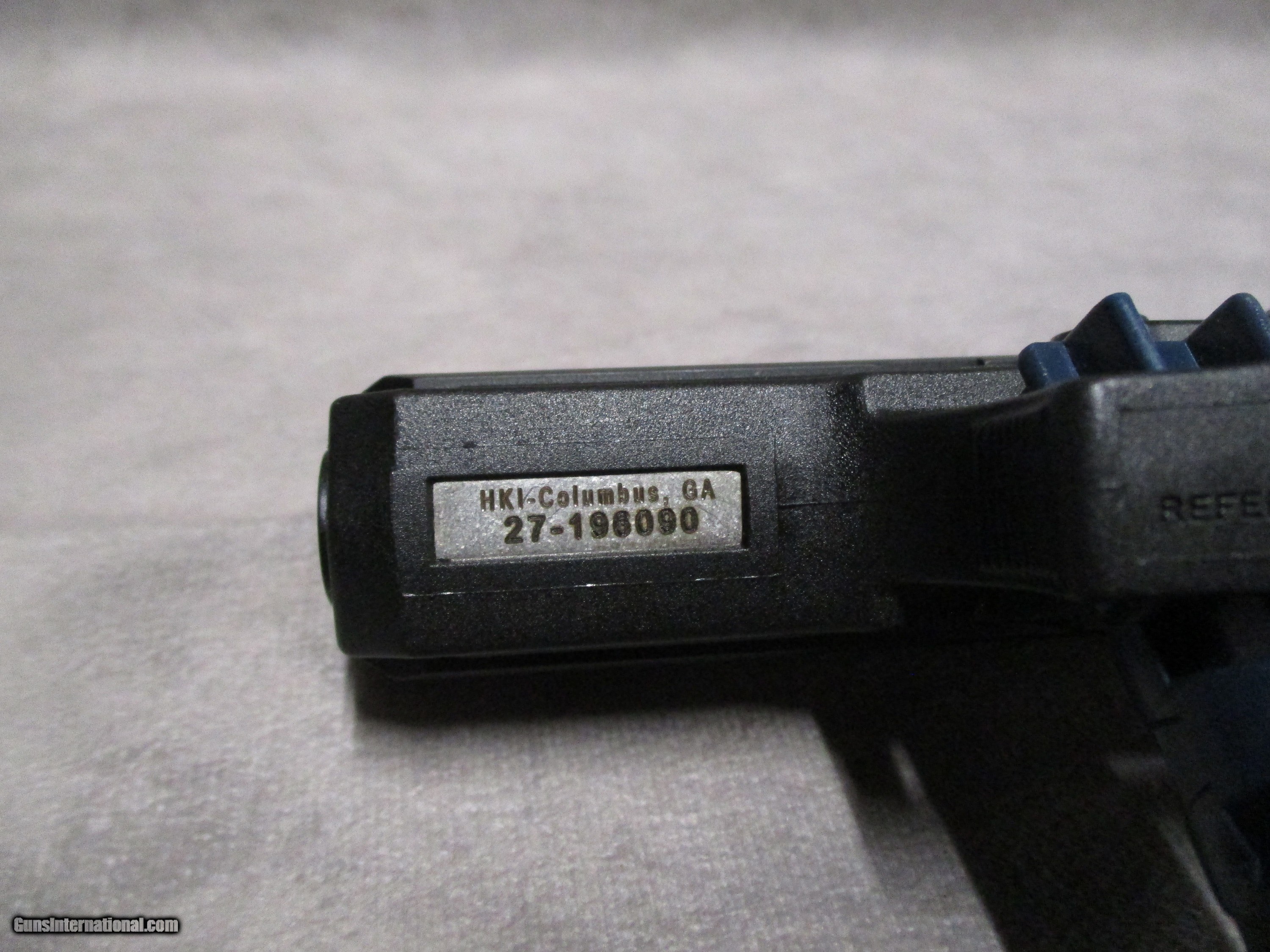 Description: Originally designed for the U.S. market, the USP has also seen use worldwide with various military and law enforcement organizations. The qualities of the USP’s design, such as strength and durability, allow it to provide excellent service as a military/LE pistol. Although the Mark 23 pistol is well-known for the rigorous testing it went through, it is less well known that the USP went through similar tests at around the same time. Abuse and function testing of the USP (in .40 S&W) involved firing more than 20,000 rounds of ammunition without a component failure. Also conducted were MILSPEC environmental tests in both high and low temperatures, in mud, immersed in water, and in salt spray. The highest temperature was 67 deg. Celsius or 152.6 deg Fahrenheit, while the lowest temperature was -42 deg. Celsius or -43.6 deg. Fahrenheit. The test specifically involved freezing the pistol at the lowest temperature, firing it, freezing it again, then suddenly heating it to the maximum temperature and firing again. This process was repeated over and over to test for warping of the metal in the slide. In the end, the USP survived this series of tests with no adverse effects. In one of the more insane tests, a bullet was intentionally lodged in the barrel and a round was fired with the intention of using the fired bullet to clear the obstruction. As a testament to the strength of the USP’s design, the barrel was successfully cleared with only minor structural deformation and the pistol continued to produce consistent groups on the target when test fired for accuracy. The measured distance was 25 meters with the total group being under 4 inches in size. This example is SKU # 81000330. It is the USP 9 Compact with V1 trigger system and Tru Dot night sights. The V1 trigger system sports a bobbed hammer but otherwise has the standard double-action/single-action trigger system. It is fitted with the standard manual safety/de-cocking lever. Barrel length for the USP9C is 3.58 inches, while the overall length of the pistol is 6.81 inches. The sight radius is a respectable 5.31 inches. This new in box pistol comes with no less than three 13-round magazines, a key for the lock-out device, and a manual. SOLD Handgun Caliber: 9x19mm Parabellum (9mm Luger, 9x19mm NATO) Manufacturer: Heckler & Koch Model: USP 9 Compact v1 Serial Number: 27-196090 Bore: Polygonal rifling, 6 grooves, 1:9.8 inches (1 in 250 mm) RH twist Ejectors: Auto-ejection Condition: New in Box Barrels: Cold hammer-forged chromium steel Barrel Type: Tilting Action: Modified Browning Short Recoil System, patented H&K recoil reduction system Triggers: DA trigger, 11.5 lbs., SA trigger, 4.5 lbs. Stock: Fiber reinforced polymer frame Fore End: Polymer, picatinny rail equipped Finish: “Hostile Environment” blued finish Weight: 1.60 lbs. with empty magazine Sights: Drift adjustable 3-dot Tru Dot tritium night sights, sight radius 5.31 inches (135 mm) Case: H&K box |