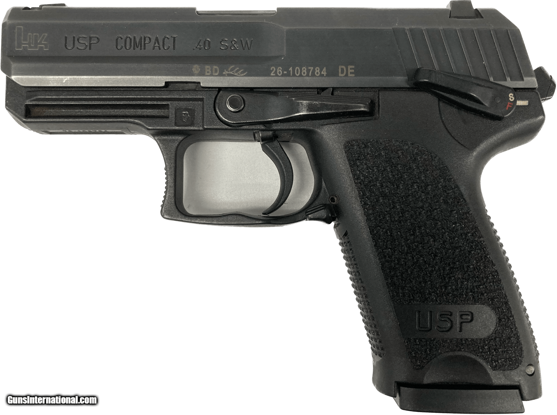 Description: Guns Listing ID: 559670 Heckler & Koch USP 40 SW Compact Pistol. Holds 12 + 1 rounds. 3.5 in Barrel and 6.5 OAL. Includes two 12 rd factory magazines. Black finish with normal wear. SOLD Manufacturer: HECKLER & KOCH Model: USP COMPACT Caliber Info: .40 S&W Condition: Used - Non-Certified Barrels: 3.5 BARREL Action: SEMI AUTOMATIC Finish: black |
