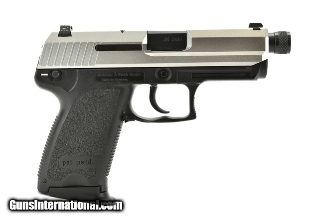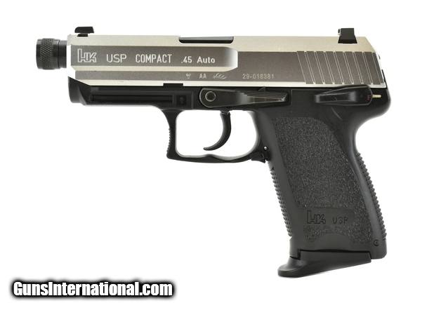 Description: Heckler & Koch USP Compact .45 ACP caliber pistol. Compact tactical model with two-tone silver and black finish.
