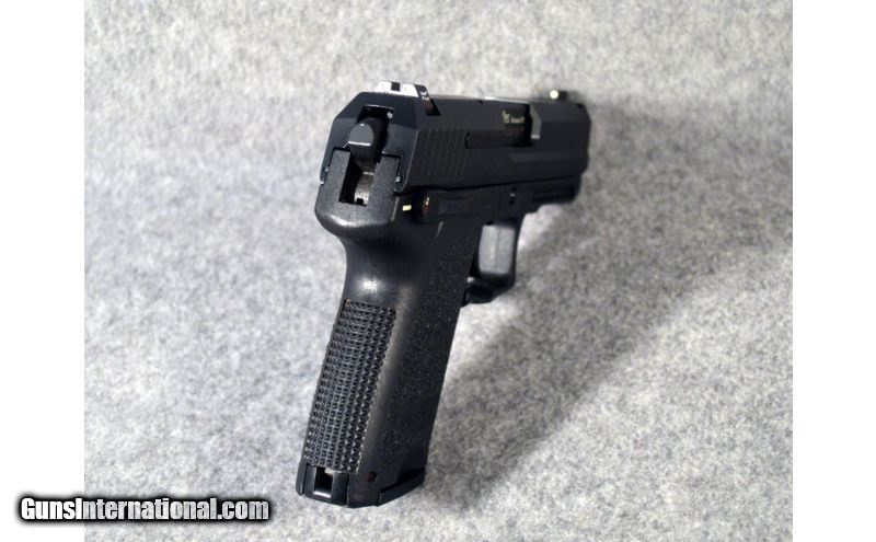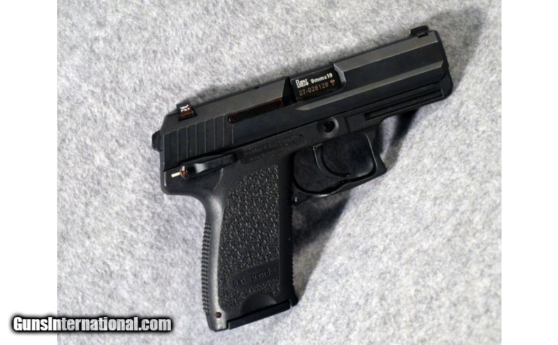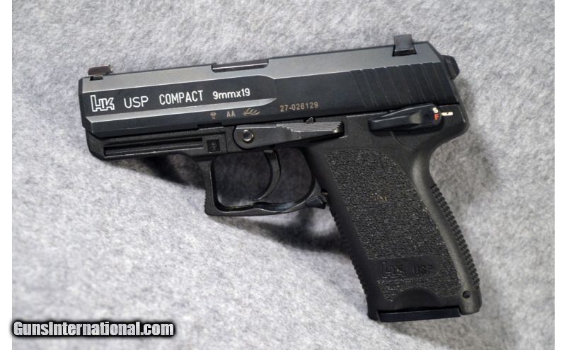 Description: Heckler & Koch USP Compact in 9mm with Trijicon night sights, original factory case, paperwork and additional 13 round magazine. Handgun is in very good to excellent condition overall. SOLD Manufacturer: Recent manufacture. Caliber Info: 9mm Luger. Chambers: Semi-automatic magazine fed. Metal Condition: Very good. Bore Condition: Very good. Barrels: 3.5" blued barrel. Triggers: Single trigger with thumb safety. Weight: 30 Oz. Sights: Adjustable front and rear Trijicon night sights. Extras: Comes with original plastic factory case, paperwork and additional 13 round magazine. Item Location: Lexington, KY |