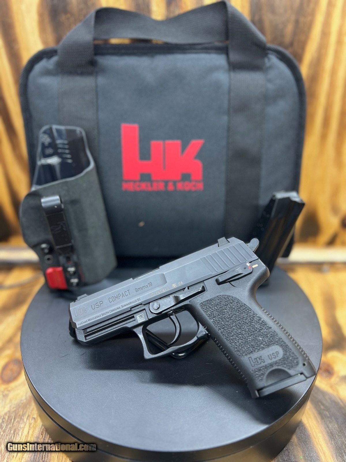 Description: Guns Listing ID: 832698 *Gun comes with soft carry case, holster and two magazines* Originally designed for the American market the USP (Universal Self-loading Pistol) has found international acceptance as an accurate and ultra-reliable handgun. Features favored by U.S. law enforcement and military users provided much of the design criteria for the USP. FEATURES: Polymer Frame; Polygonal Rifling; Double Action/Single Action FINISH: BLACK SOLD Manufacturer: HECKLER & KOCH Model: USP COMPACT Caliber Info: 9MM LUGER (9X19 PARA) Condition: Used - Non-Certified Barrels: 3 BARREL |