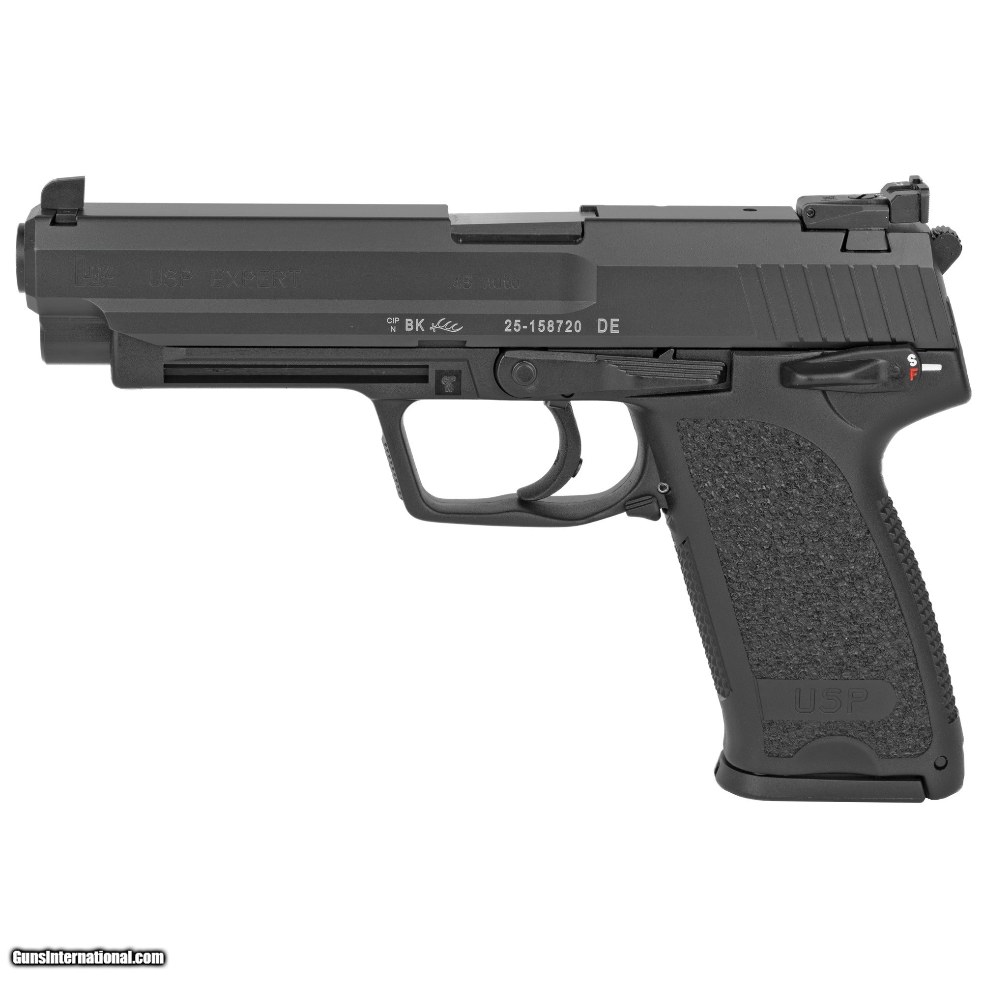 Description: BRAND NEW IN THE BOX AND READY TO SHIP! BUY IT NOW!! Manufacturer: Heckler & Koch Model: USP45 Expert SKU: M704580-A5 Caliber: .45 ACP Capacity: (2) 12 Round Magazines Barrel Length: 5.19" Frame: Black Polymer Overall Length: 8.81" Sights: Adjustable Target Grips: Black Polymer Weight: 37.2 oz The USP Expert was developed especially for target shooters. Clarification of the performance specifications and prototype trials were carried out in close cooperation with national and international renowned target shooters. The result is a target pistol with universal application for most of the large bore disciplines of BDS, DSB as well as other unions. With this target pistol, HK meets requirements of the world elite. In addition to the USP standard features, the EXPERT has specific features which make it what it is: One of the world’s best target pistols. Features: