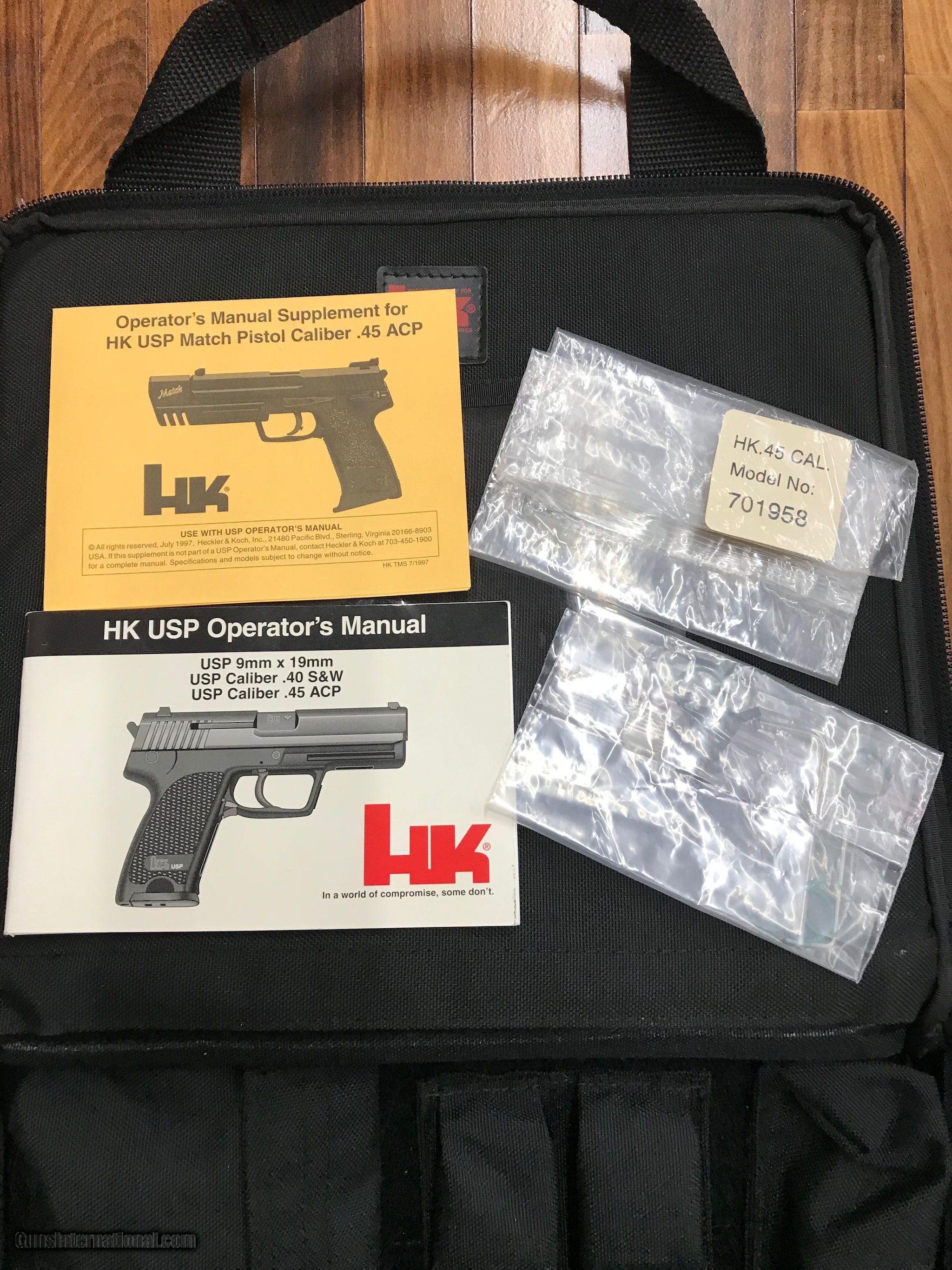 Description: Guns Listing ID: 996791 THIS LISTING IS FOR A BRAND NEW, UNFIRED, PRODUCED IN 1996 H&K USP MATCH! FEATURES A 6\" LONG SLIDE IN STAINLESS, WITH ORIGINAL CASE, MAUALS, AND 8 - 10 ROUND MAGAZINES! SEE THE PICTURES. THIS IS A TRUE COLLECTORS DREAM PISTOL! THERE IS ONLY ONE OTHER ONE FOR SALE CURRENTLY IN THE US. IT‚‚S PRICED AT 10K SOLD Manufacturer: HECKLER & KOCH Model: USP MATCH STAINLESS Caliber Info: .45 ACP Condition: Used - Non-Certified Barrels: 6 BARREL Finish: STAINLESS & BLACK |