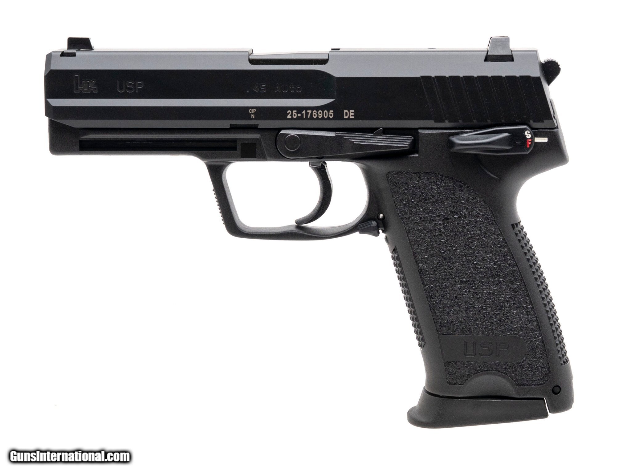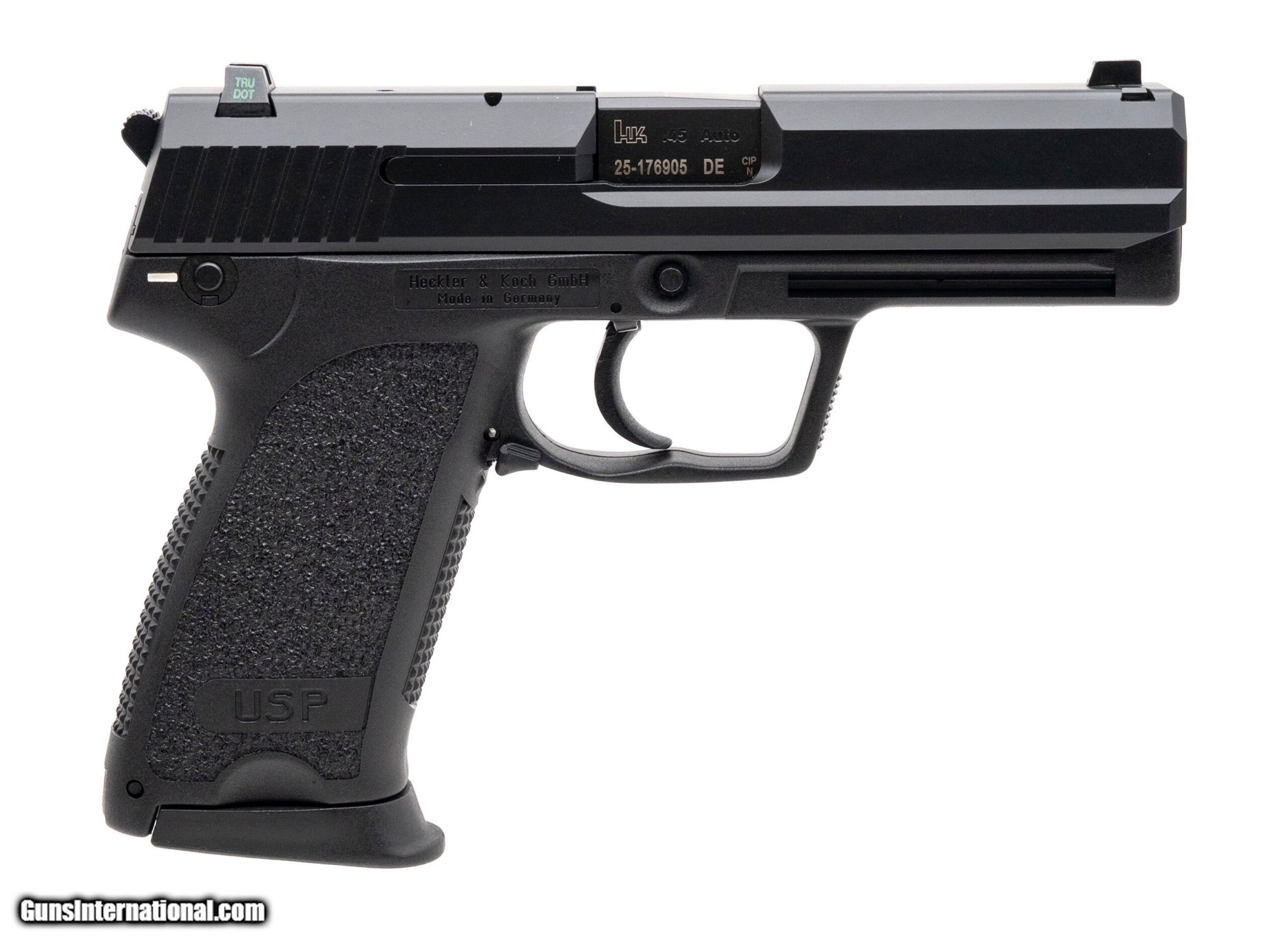 Description: Guns Listing ID: 545649 SN: 25-176905. Modern production, .45 Auto with a 4.41\" barrel. German made double action pistol with night sights and a safety/decocker. Overall condition is near excellent. Comes with case and two extra magazines. (PR74160) SOLD Manufacturer: HECKLER & KOCH Model: USP V1 Caliber Info: .45 ACP Condition: Used - Non-Certified Barrels: 4.41" BARREL Action: SEMI AUTOMATIC Finish: black |