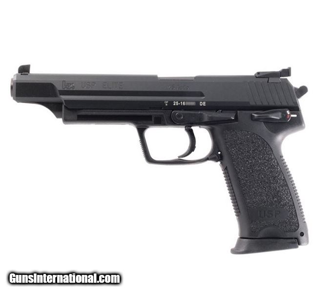 Description: Manufacturer: Heckler & Koch Model: USP45 Elite V1 Action: Double / Single SKU: 81000367 Caliber: .45 ACP Capacity: (2) 12 Round Magazines Barrel Length: 5.98" Frame: Black Polymer Grips: Black Polymer Overall Length: 9.37" Sights: Blade Front - Adjustable Rear Weight 33.86 oz All items are factory new in box unless otherwise stated. Based on the information available to us, the above specifications describe this item to the best of our knowledge. For further information, please contact or visit the manufacturer's . SOLD |