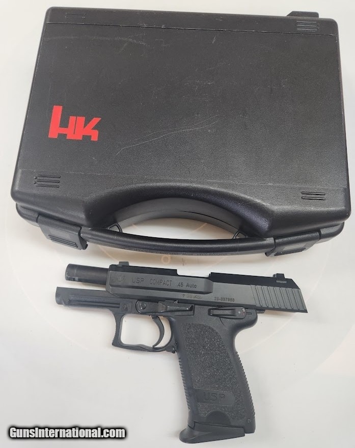 Description: Guns Listing ID: 86198 HK, USP, V1, DA/SA, Compact, 45ACP, 3.78\" Barrel, Polymer Frame, Black Finish, 3 Dot Sights, Safety, Decocker, 8Rd, 1 Magazine Polymer Frame Polygonal Rifling Double Action/Single Action The HK USP Compact is a small frame pistol capable of firing the most powerful cartridges. Based on the full-size USP models, these handy pistols combine compact size with optimum effective shooting performance. The reduction in trigger reach and grip circumference increases concealability and enhances shooting ergonomics. The USP Compact uses a narrow, full-hand grip frame with a choice of interchangeable extended or flush-fitting magazine floorplates. This makes the pistol easy to shoot without sacrificing concealability. This model comes with the V1 Trigger (DA/SA with a safety/decocker lever). INCLUDES: 1 Magazine Clamshell Case SOLD Manufacturer: HECKLER & KOCH Model: USP45C Caliber Info: .45 ACP Condition: Used - Non-Certified Barrels: 3.8 BARREL Action: SEMI AUTOMATIC Weight: 3.6 LBS. |