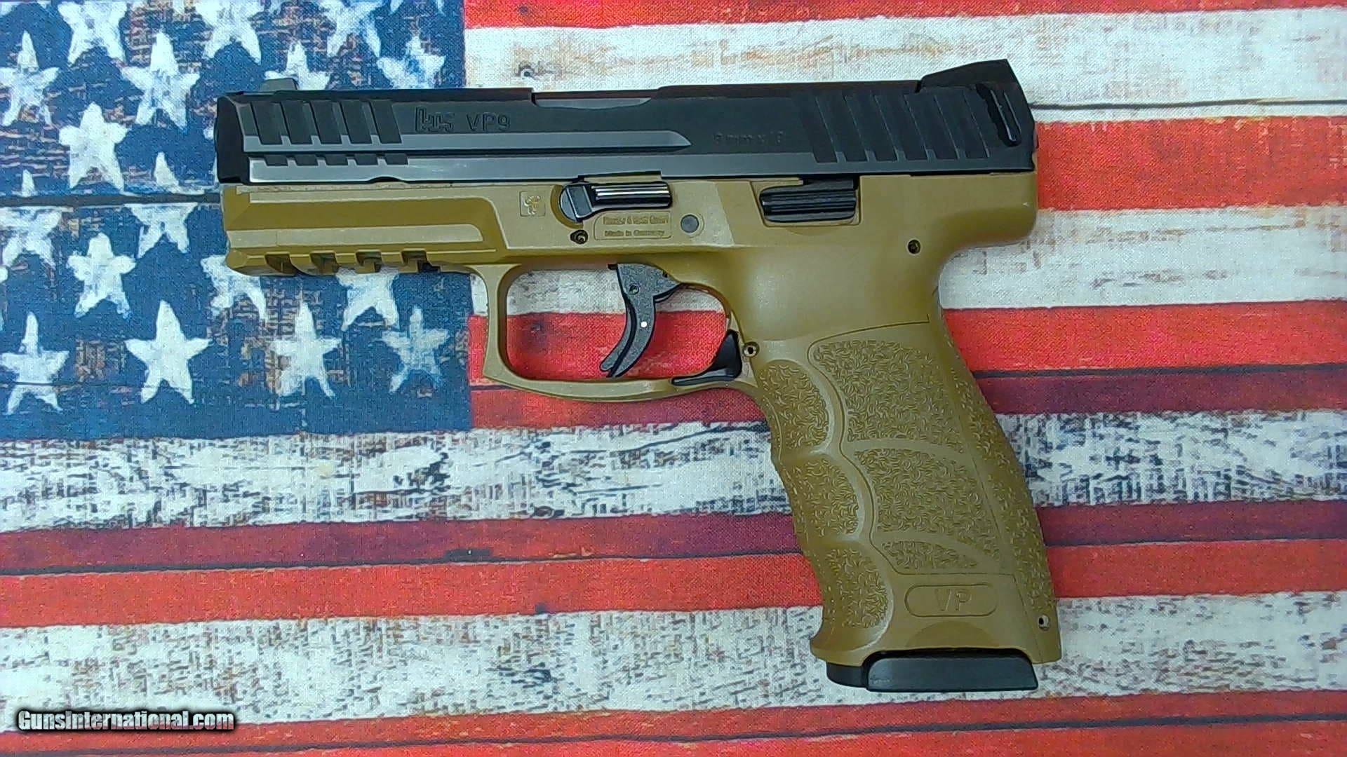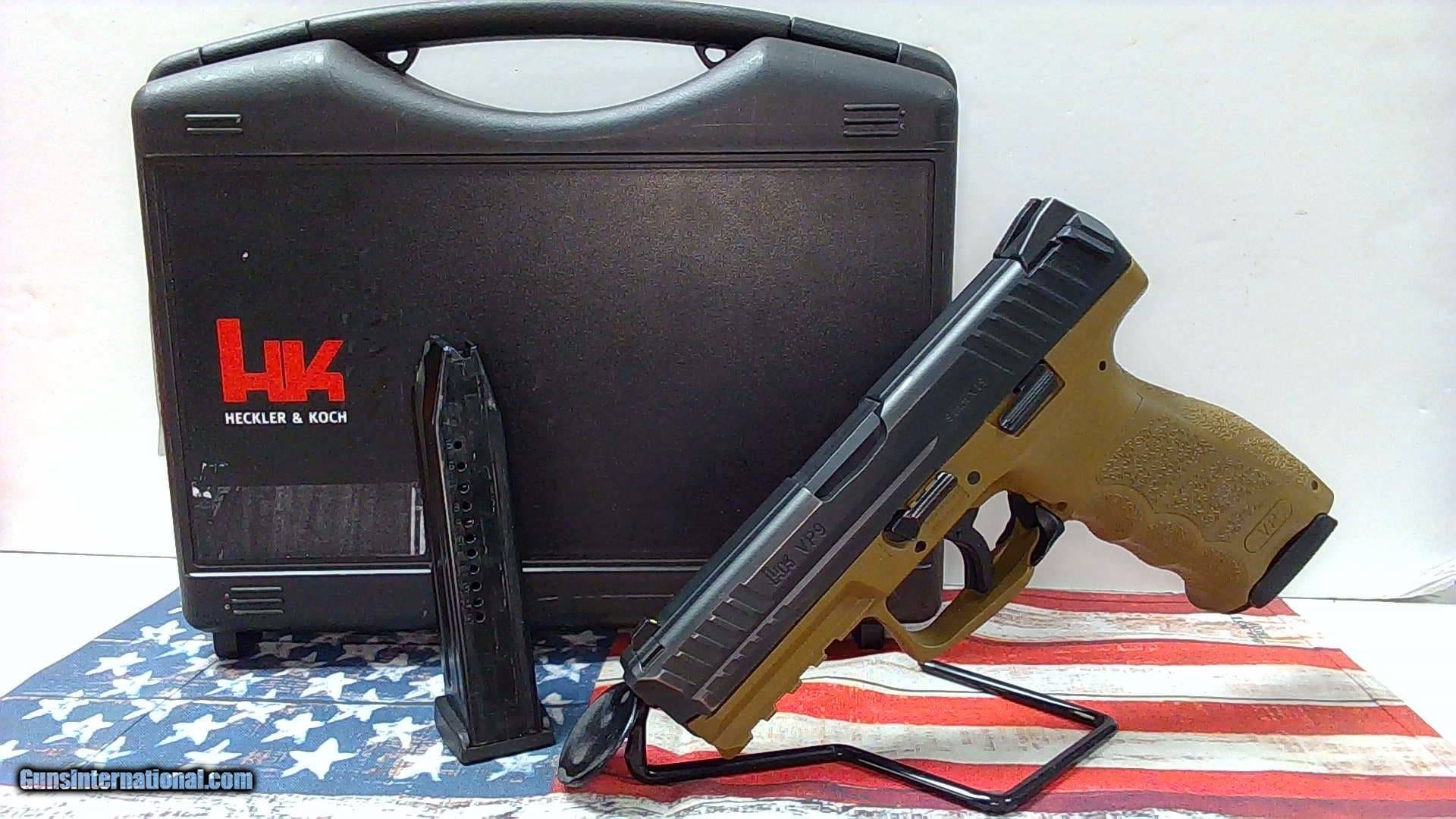 Description: Guns Listing ID: 994733 This pistol is in good overall condition. It does not appear to have had very many rounds through it, however, the slide shows signs of holster wear. Original hard case, two magazines, backstraps and speed loader included. The Heckler & Koch VP9 offers great performance and accuracy in a lightweight, durable, and reliable handgun design. It comes chambered in 9mm with a 4.09 inch barrel. Features include interchangeable backstraps, night sights, and two 17 round magazines. SOLD Manufacturer: HECKLER & KOCH Model: VP9 Caliber Info: 9MM LUGER (9X19 PARA) Condition: Used - Non-Certified Barrels: 4.1 BARREL Finish: FDE |