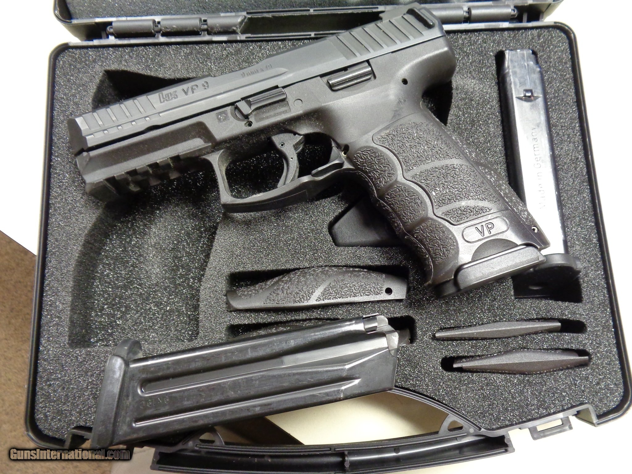 Description: Guns Listing ID: 923353 Heckler & Koch VP9 9mm traded in to us from a police department. This pistol is in the box with the 3 magazines and other pictured accessories. SOLD Manufacturer: HECKLER & KOCH Model: VP9 Caliber Info: 9MM LUGER (9X19 PARA) Condition: Used - Non-Certified Barrels: 4.1 BARREL |