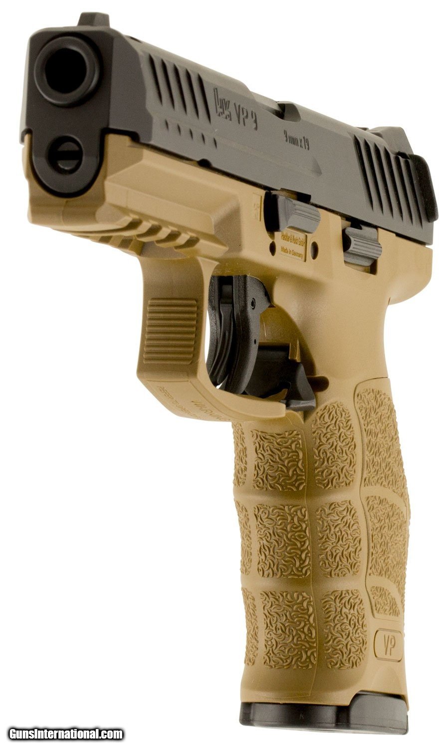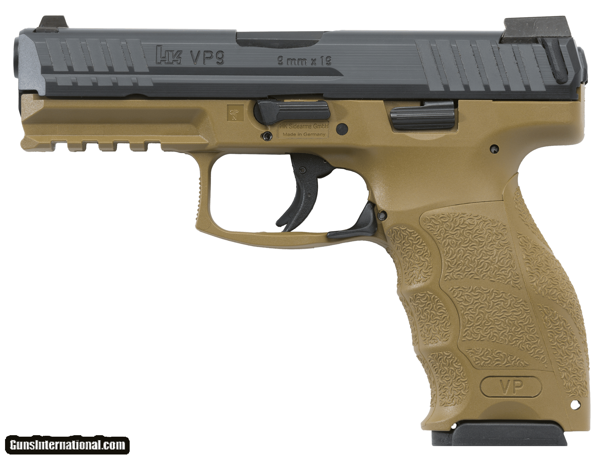 Description: Guns Listing ID: 21908 The Heckler Koch VP9 is a striker-fired semi-automatic pistol. It sports an enhanced HK light pull trigger that offers a more consistent pre-travel pull. It features a cold hammer forged cannon grade steel 4.09 barrel with polygonal bore corrosion resistant machined steel slide captive flat recoil spring ergonomic grip with interchangeable backstraps and side panels fully ambidextrous controls trigger latch safety charging supports and extended picatinny rail. The VP9 is available in a variety of finishes. Details Caliber 9 mm x 19 - Length 7.34 in. - Height 5.41 in. - Width 1.32 in. - Barrel Length 4.09 in. - Sight Radius 6.38 in. - Weight (with empty magazine) 25.56 oz. - Weight (empty magazine) 3.28 oz. - Magazine Capacity 15 - Trigger Pull 5.4 lbs. - Trigger Travel .24 inches - Return Travel .12 inches - Barrel ProfileTwist Polygonal 6 grooves right-hand twist 1 in 9.8 inches Part no. 700009FDELE-A5 , VP9, 9 mm with FDE (Flat Dark Earth) frame, with three 15 rd. magazines and night sights Manufacturer: HECKLER & KOCH Model: VP9 Caliber Info: 9MM LUGER (9X19 PARA) Condition: new Barrels: 4.1" BARREL Action: STRIKER FIRED Finish: TAN Weight: 1.7 lbs. Price: $669.99 Contact Seller |