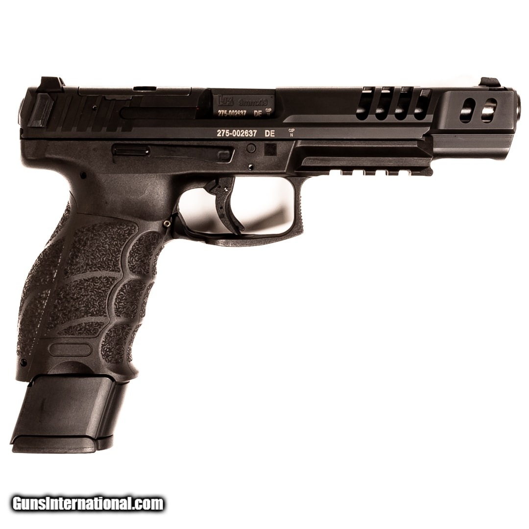 Description: Guns Listing ID: 678513 Whether you define \"competition\" as formal practical shooting matches or the quest for bragging rights among your circle of friends at the shooting range, the VP9 Match can take you to the next level. It‚‚s the latest, greatest tool from HK for vanquishing the competition. The VP9 Match offers the same class-leading ergonomics and trigger feel that made the VP9 the best-selling HK pistol ever and much more! Purchase includes the original case, manual, four 20-round magazines, a loader, and extra backstraps and side panels. Get the best bang for your buck when you get a Certified Used Firearm . When you see the Certified Used stamp on any of our firearms, you can be confident that you’re getting exactly what you want – a gun only in very good to excellent condition and held to the highest quality standard. All Certified Used Guns come with a ‘no questions asked’ return policy . PLUS, ALL CERTIFIED USED GUNS SHIP FREE SOLD Manufacturer: HECKLER & KOCH Model: VP9 MATCH Caliber Info: 9MM LUGER (9X19 PARA) Condition: Used - Certified Barrels: 5.5 barrel Finish: BLACK |