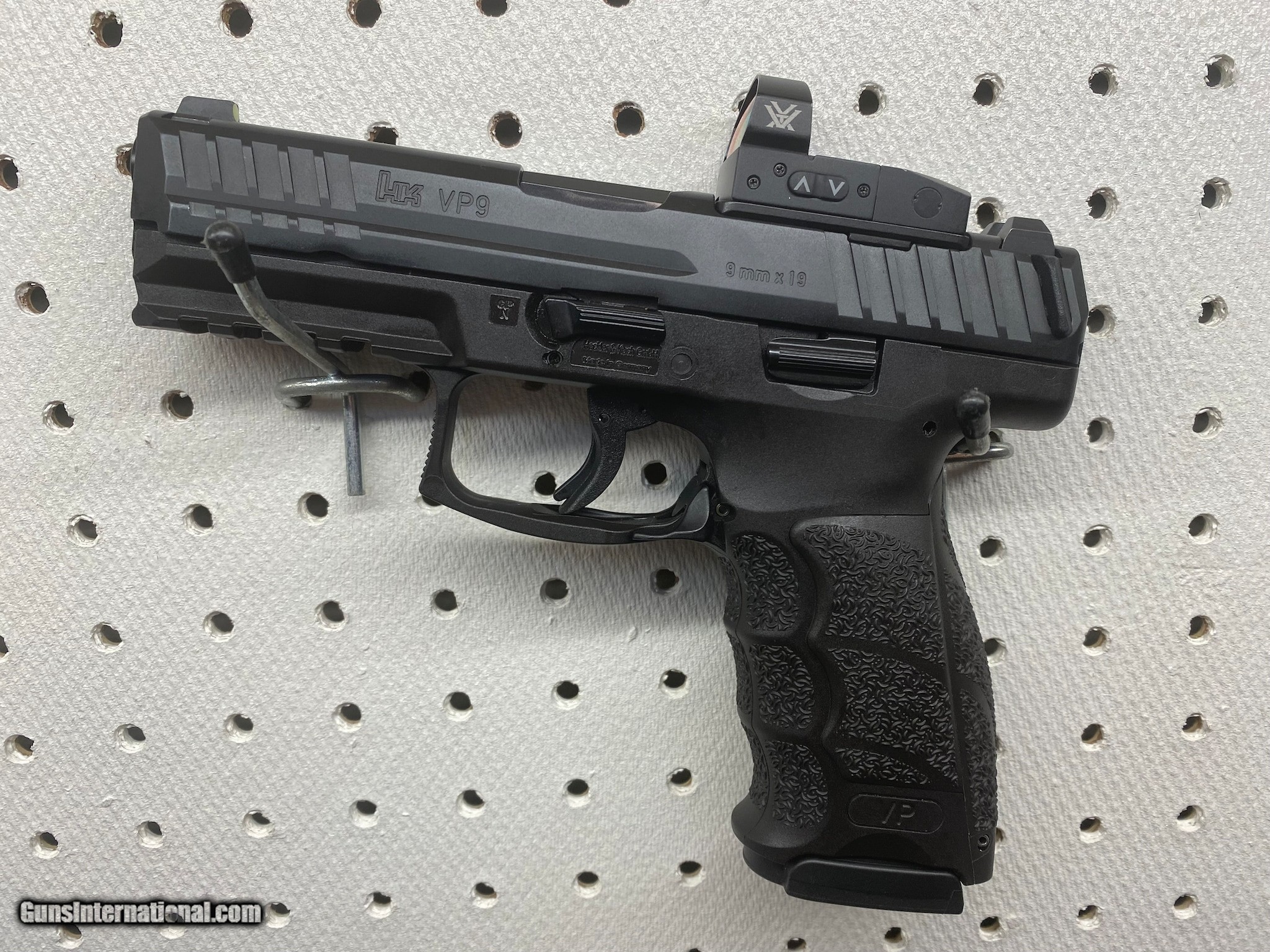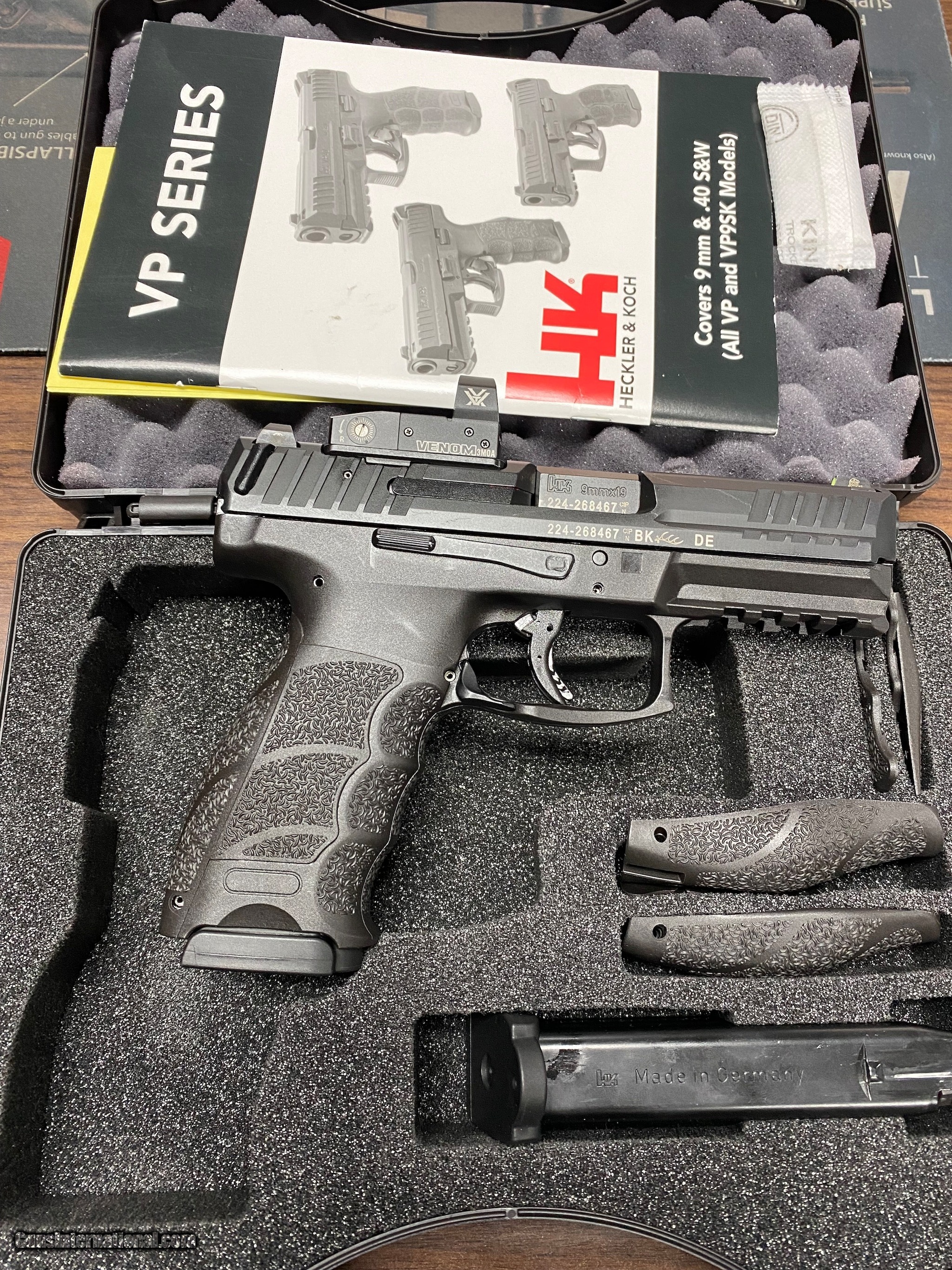 Description: Guns Listing ID: 60548 The VP9 breaks ground with its integration of a unique striker firing system with an enhanced HK light pull trigger. Theresult is a pistol with custom-fit ergonomics with trigger quality unequaled in any production striker fired handgun. It is well-suited for civilian sport shooting, security, military, and law enforcement use. The cold hammer-forged barrel made from cannon grade steel ensures long service life, as does the polygonal bore profile which also provides a slight increase in muzzle velocity. Ergonomic, adjustable grip Every detail, including the grip angle, the contour of the front strap and the high rear saddle were chosen to fit the human hand. And the adaptable grip frame allows you to interchange both backstraps and grip panels in 27 unique configurations to fit your hand. The VP trigger has a short, light take-up with a solid, single action type break followed by a short positive reset. The VP9 has an extended Picatinny MIL-STD-1913 rail molded into its polymer frame and machined steel slide with a protected from corrosion finish. In addition to these features, all controls are completely ambidextrous including HK‚‚s patented charging supports simple components that are mounted on each side of the rear of the slide and provide better gripping leverage for racking the slide rearward. The charging supports speed reloading and make operating the VP9 easier for shooters with reduced hand strength SOLD Manufacturer: HECKLER & KOCH Model: VP9 OR Caliber Info: 9MM LUGER (9X19 PARA) Condition: new Barrels: 4.1 BARREL |